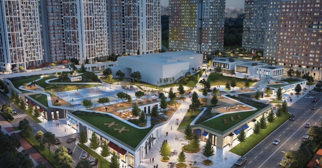 На первых этажах корпусов уже открыты магазины, салоны красоты, кафе и пекарни. Детские и спортивные площадки обустроят на стилобате, также создается ландшафтный парк.