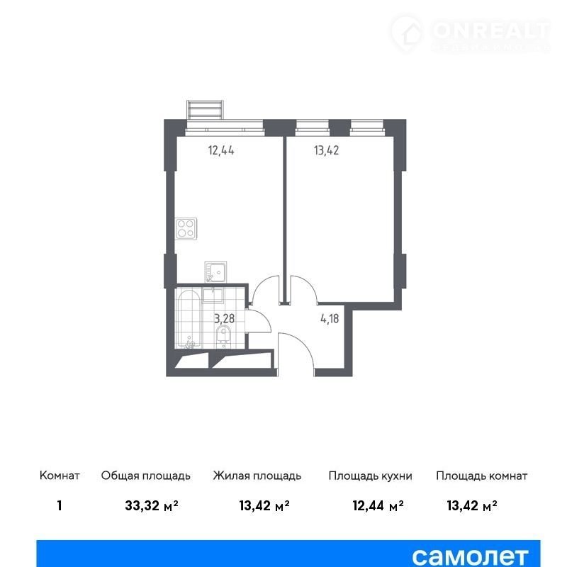 Общая площадь 33.3 м2