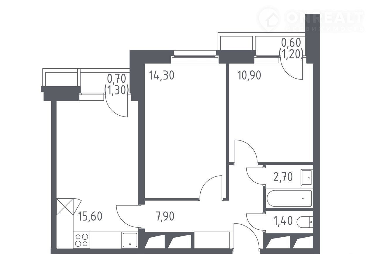 Общая площадь 53.4 м2