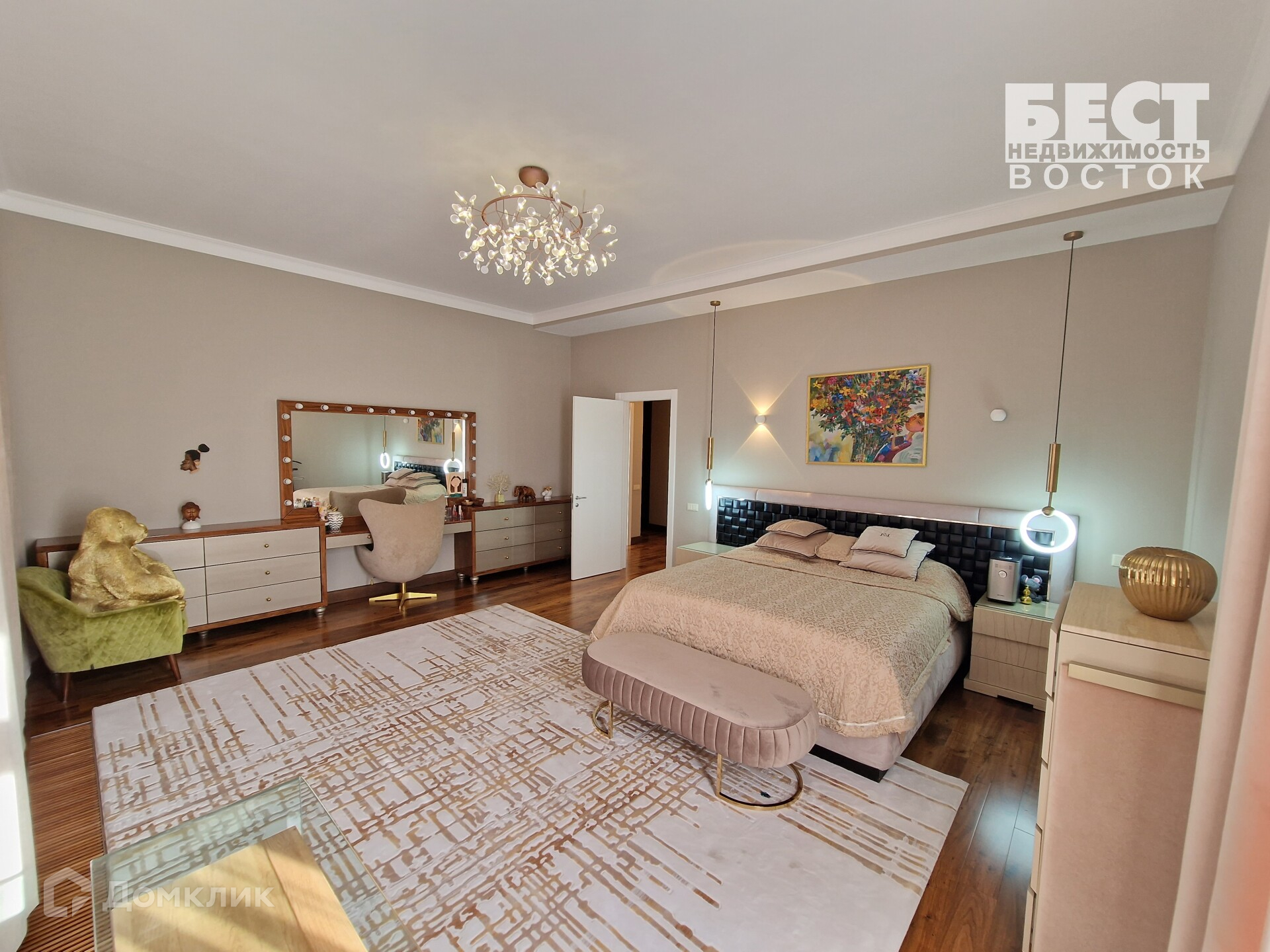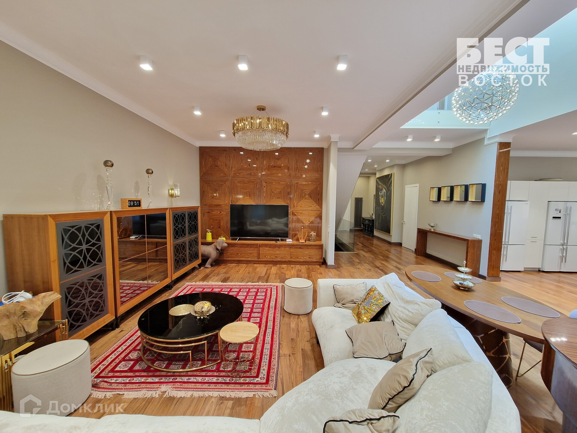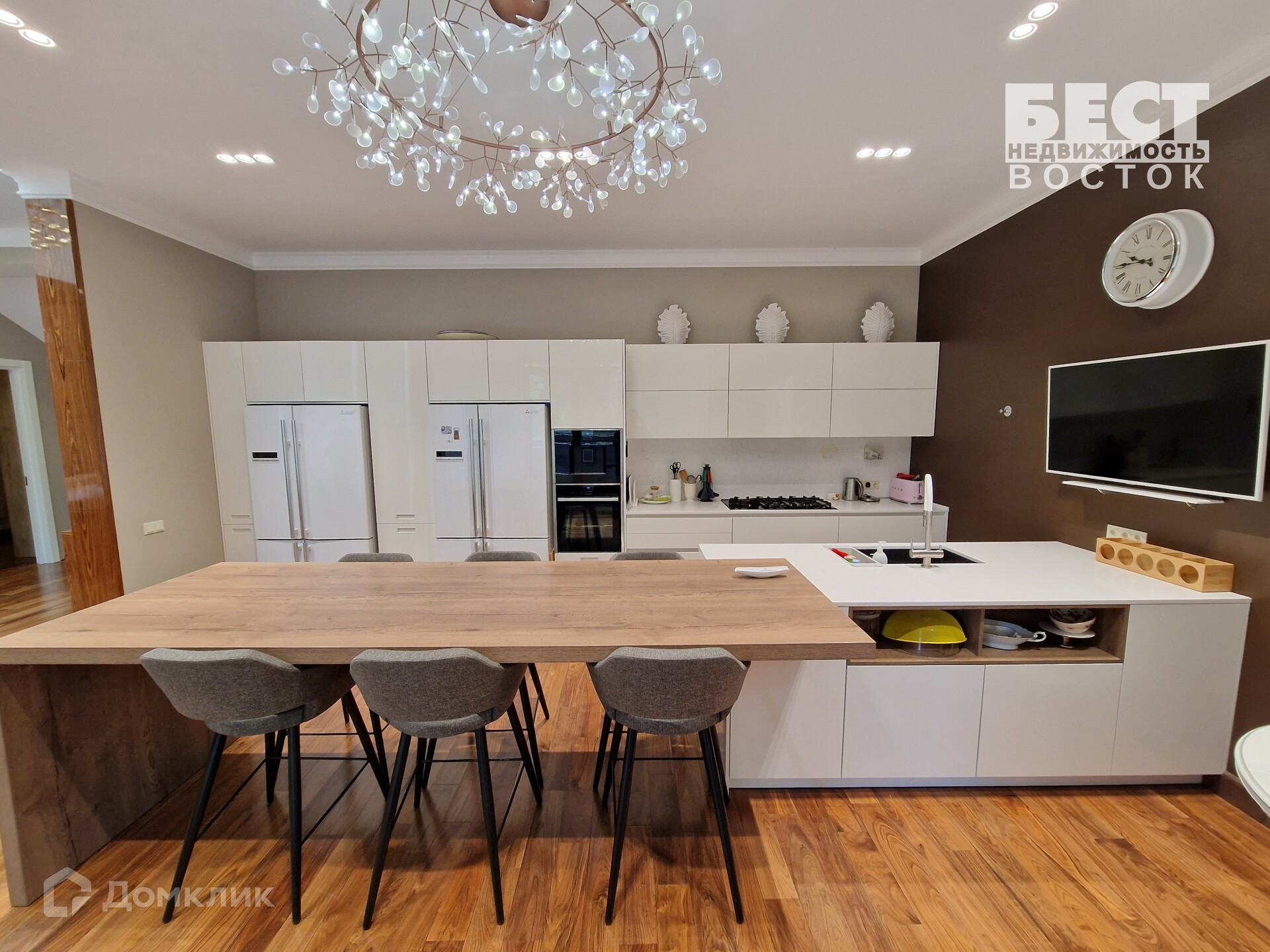 Вся мебель в доме эксклюзивная и изготовлена под заказ, бытовая техника премиальных марок.