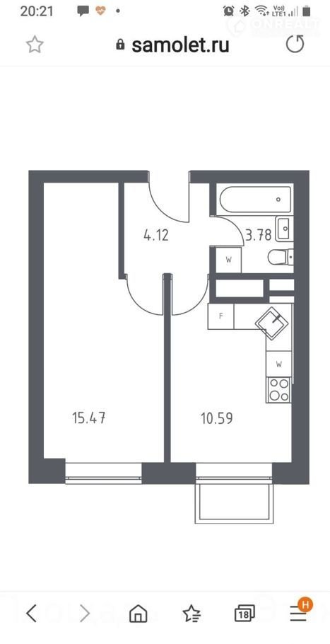 Общая площадь 34 м2