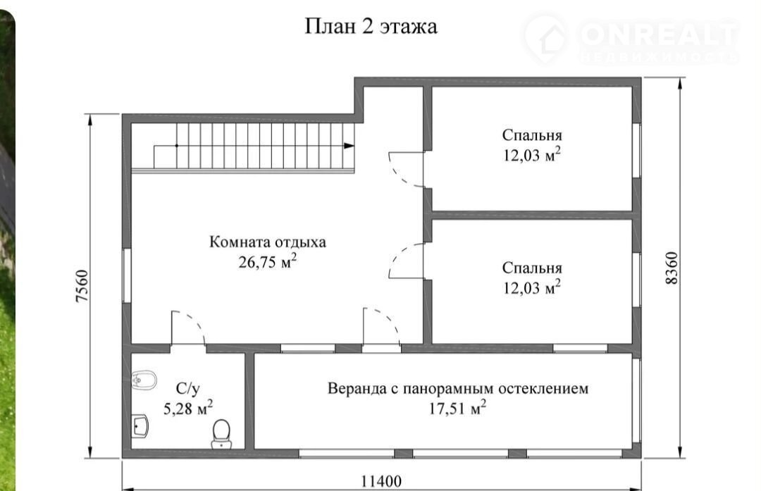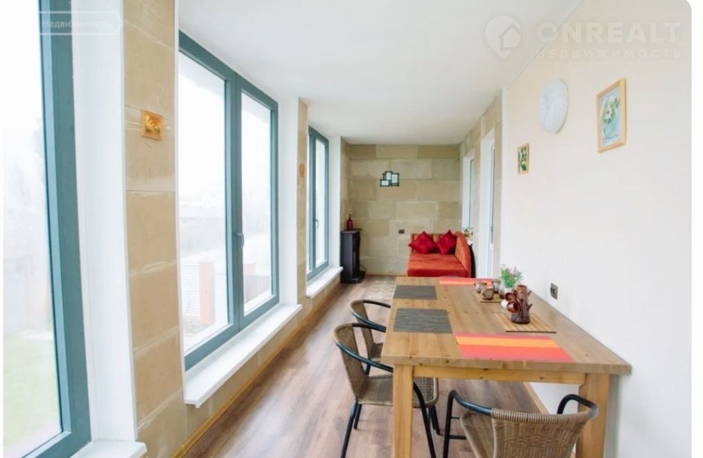 2 этаж: две спальни, гостиная, сан/узел с душевой кабиной, большая веранда с панорамными окнами с видом на закат и салюты. Отделана натуральным камнем.