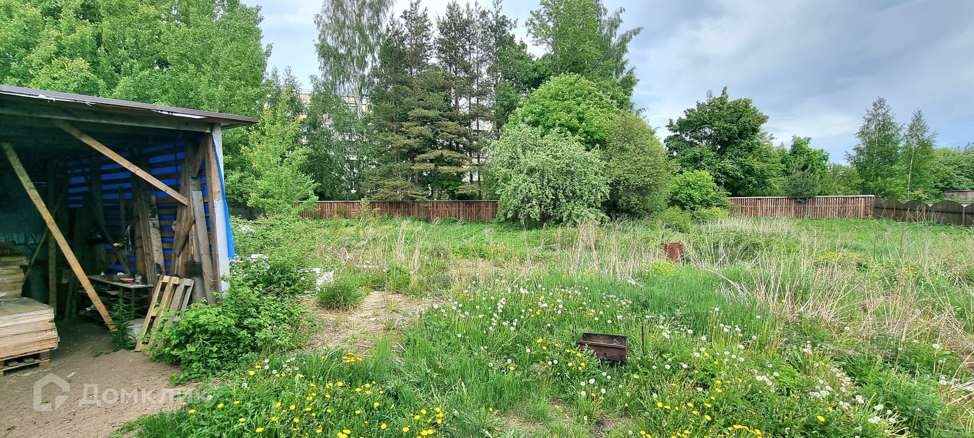 На участке стоит сарай и строительный вагончик (за доп.плату остается).