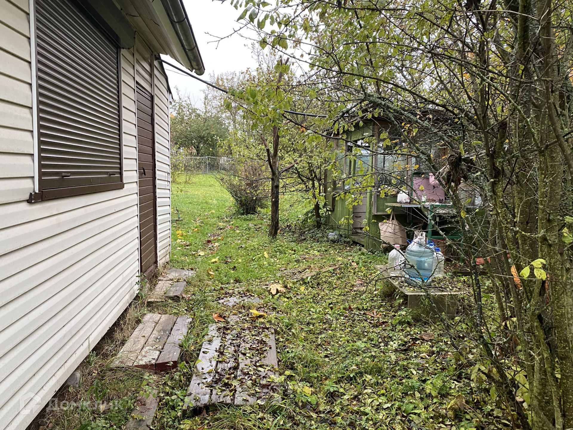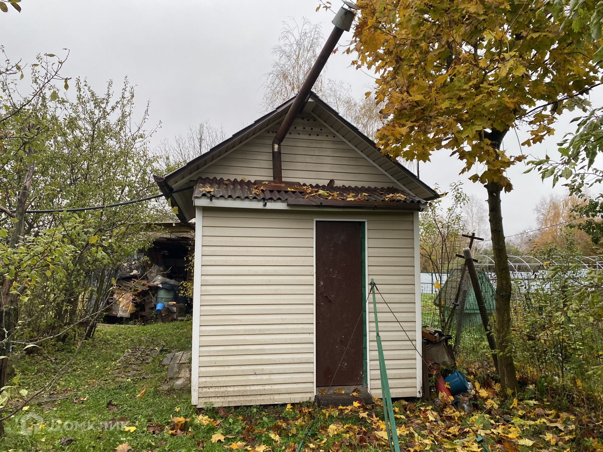 На участке теплый дачный домик (можно жить круглый год), площадью 12,5 кв. метров с пристроеной кладовкой. Домик обшит сайдингом, крыша - металлочерепица, пластиковое окно. Внутри вагонка, холодильник, газовая плита. Есть летний душ с нагревом воды и туалет - выгребная яма. Очень пригодится при строительстве! Все постройки входят в стоимость!