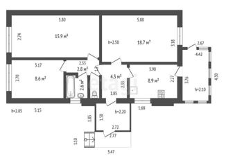 Общая площадь: 58.4 м2