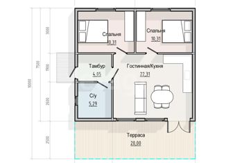 Общая площадь: 36 м2