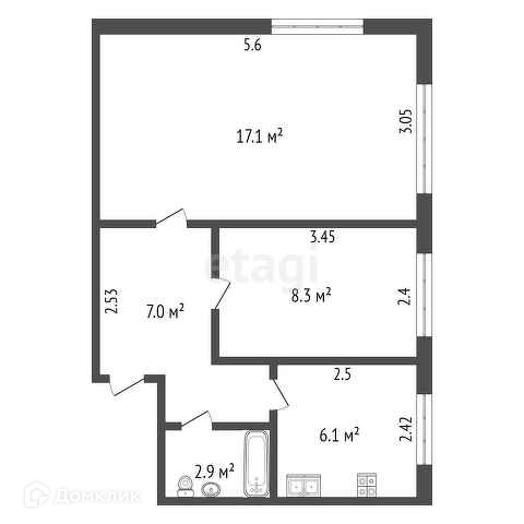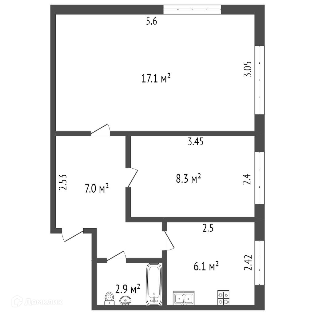 17,1 кв.м. и 8,3 кв.м.