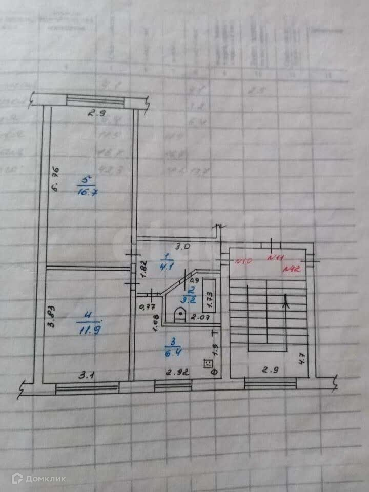 Общая площадь 42.3 м2
