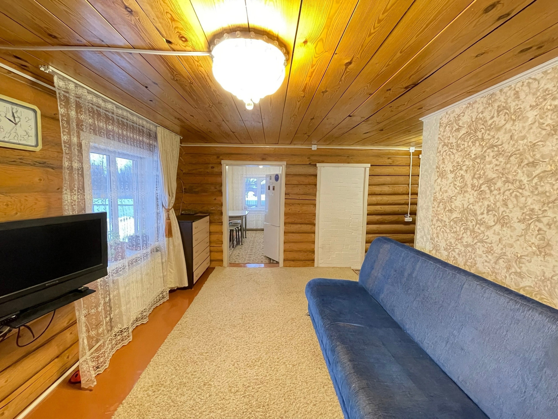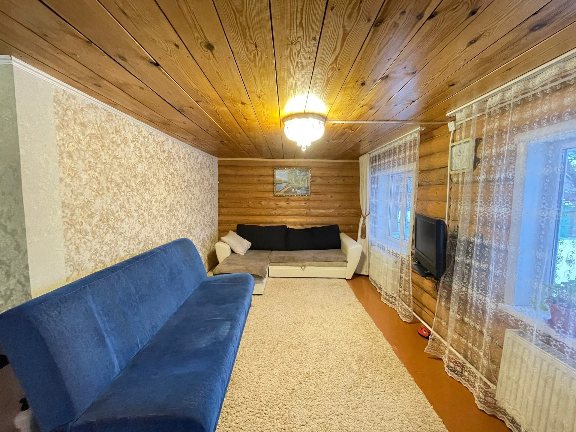 Дом бревенчатый обшит сайдингом. Фундамент ленточный. Дом очень теплый, светлый, просторный. Пластиковые окна, входная дверь железная. В доме есть погреб. Отопление электрическое. Коммуникации: свет, вода, шамбо.