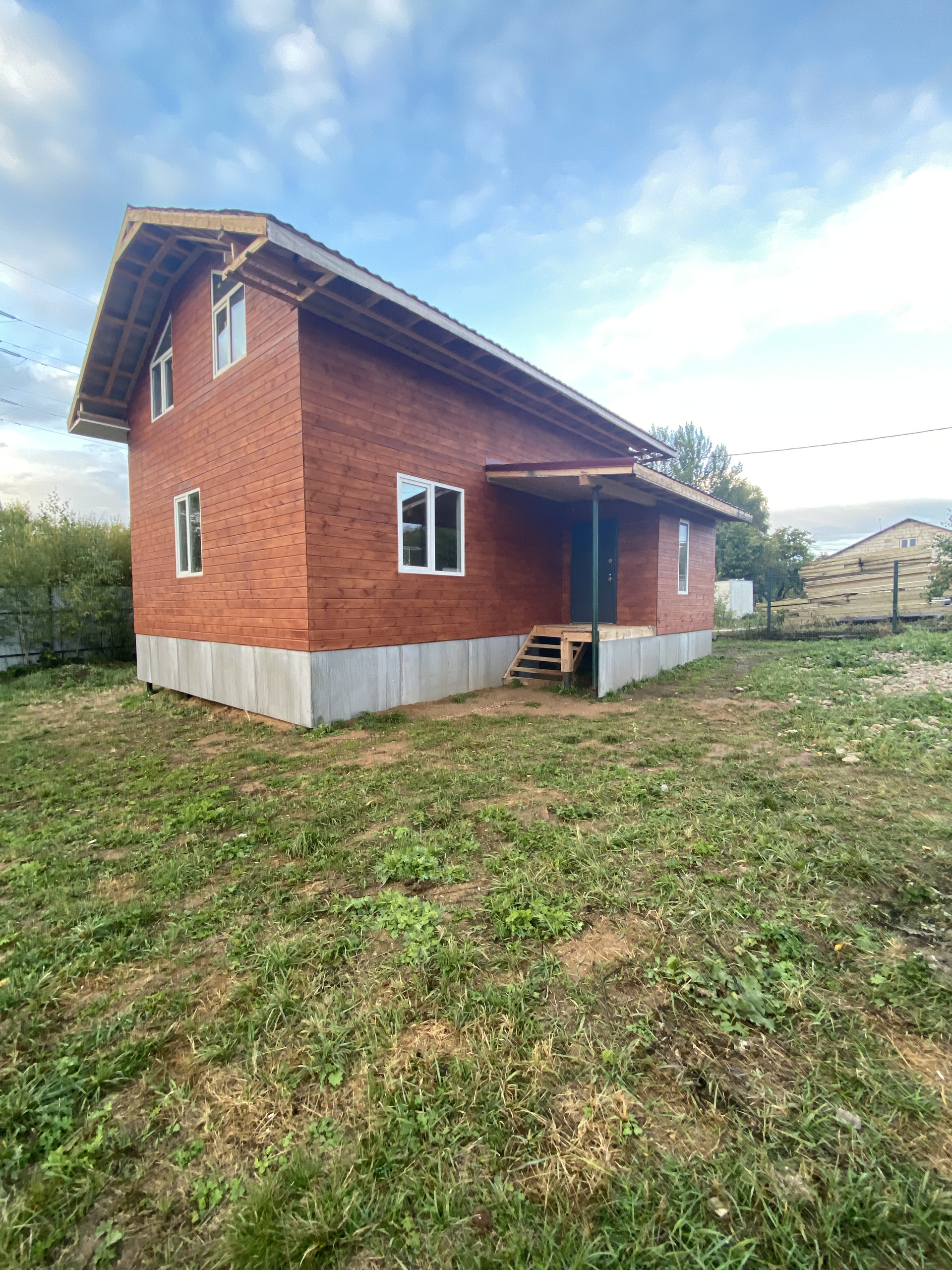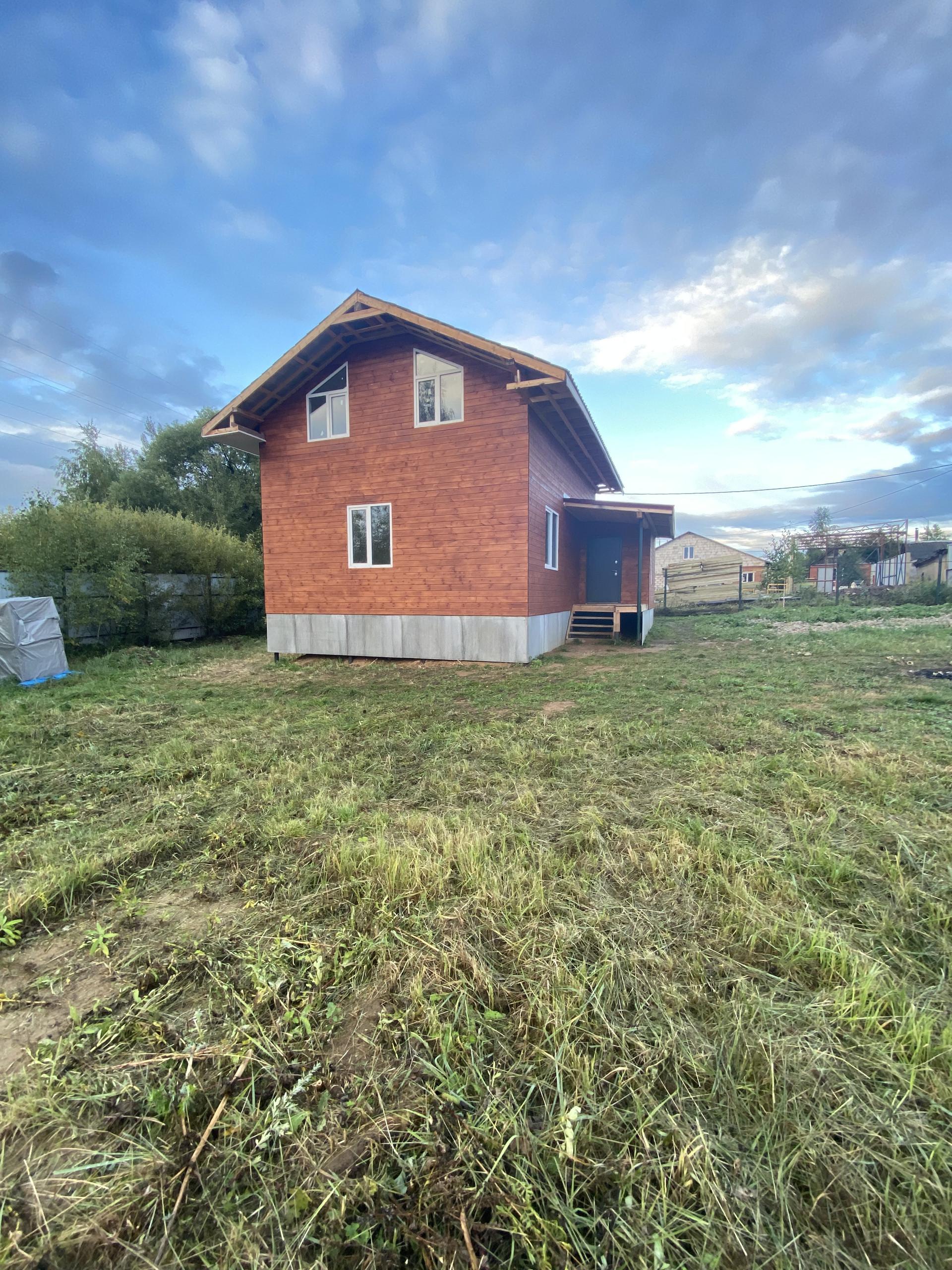 Характеристики дома: Фундамент -  сваи (высота 3 метра). Стены из бруса 150 мм на 150 мм  с утеплением 100 мм. Внутри обшит гипсокартоном, стены отштукатурены под чистовую отделку. Внешняя отделка: имитация бруса. Кровля: металло-черепица, утепление 200 мм. Окна ПВХ .  Участок прямоугольной формы, ровный, сухой, полностью огорожен. Остановка общественного транспорта в пешей доступности . Удобная транспортная доступность - подъезд со скоростной дороги М-11 Нева, с Ленинградского и Пятницкого шоссе. Юридически чистые документы, быстрый выход на сделку. Подходит под ипотеку. Звоните!