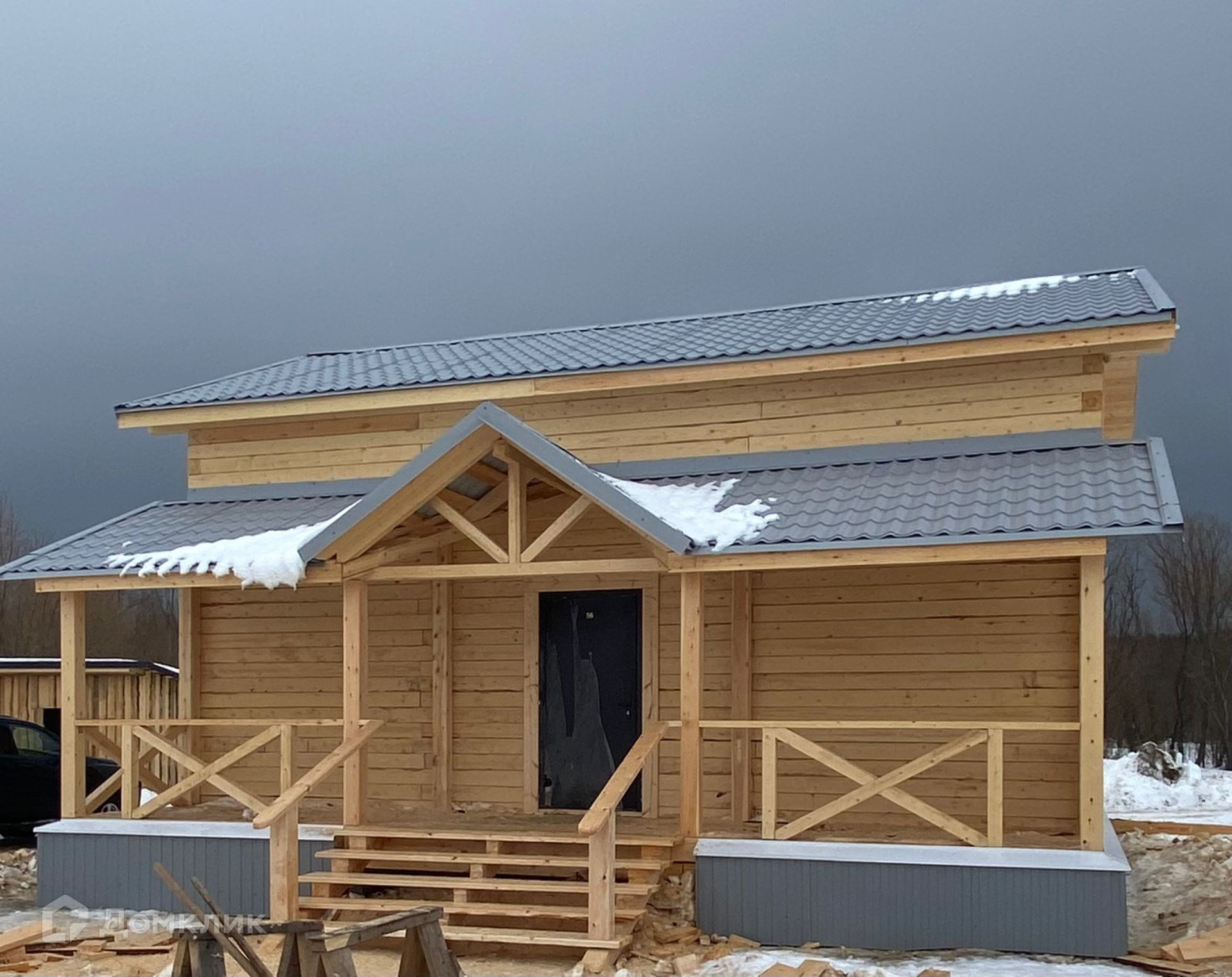 - на ж/б сваях, крыша металлочерепица, на окнах стеклопакеты