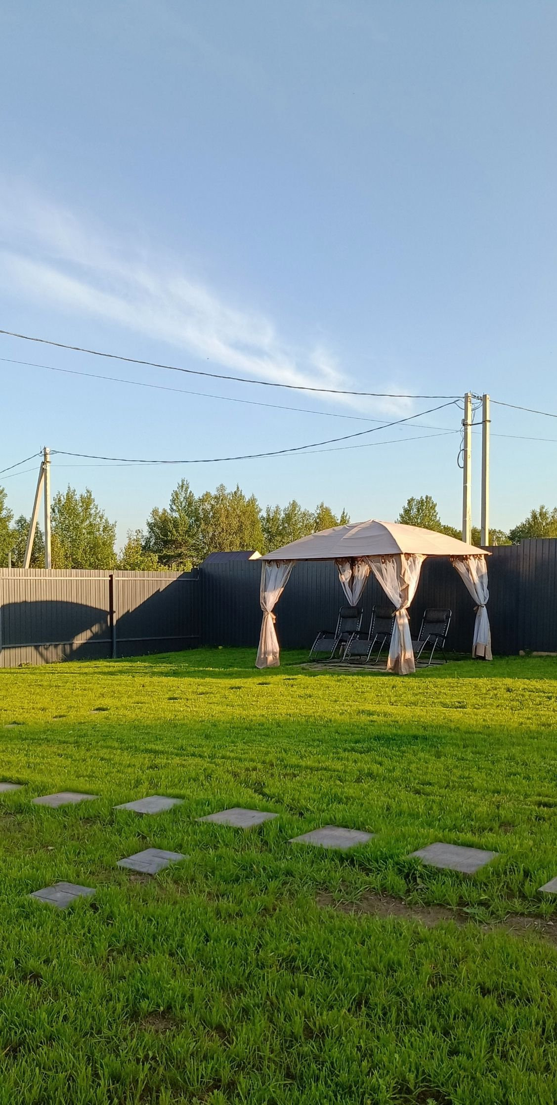 Участок 8 соток, правильной формы, выровнен, завезен плодородный грунт и посеян многолетний спортивный газон. Установлен совершенно новый и качественный забор из профнастила. Все сделано в едином стиле. На участке оборудована Мангальная зона, Хозблок 2*4м, беседка 3*3.