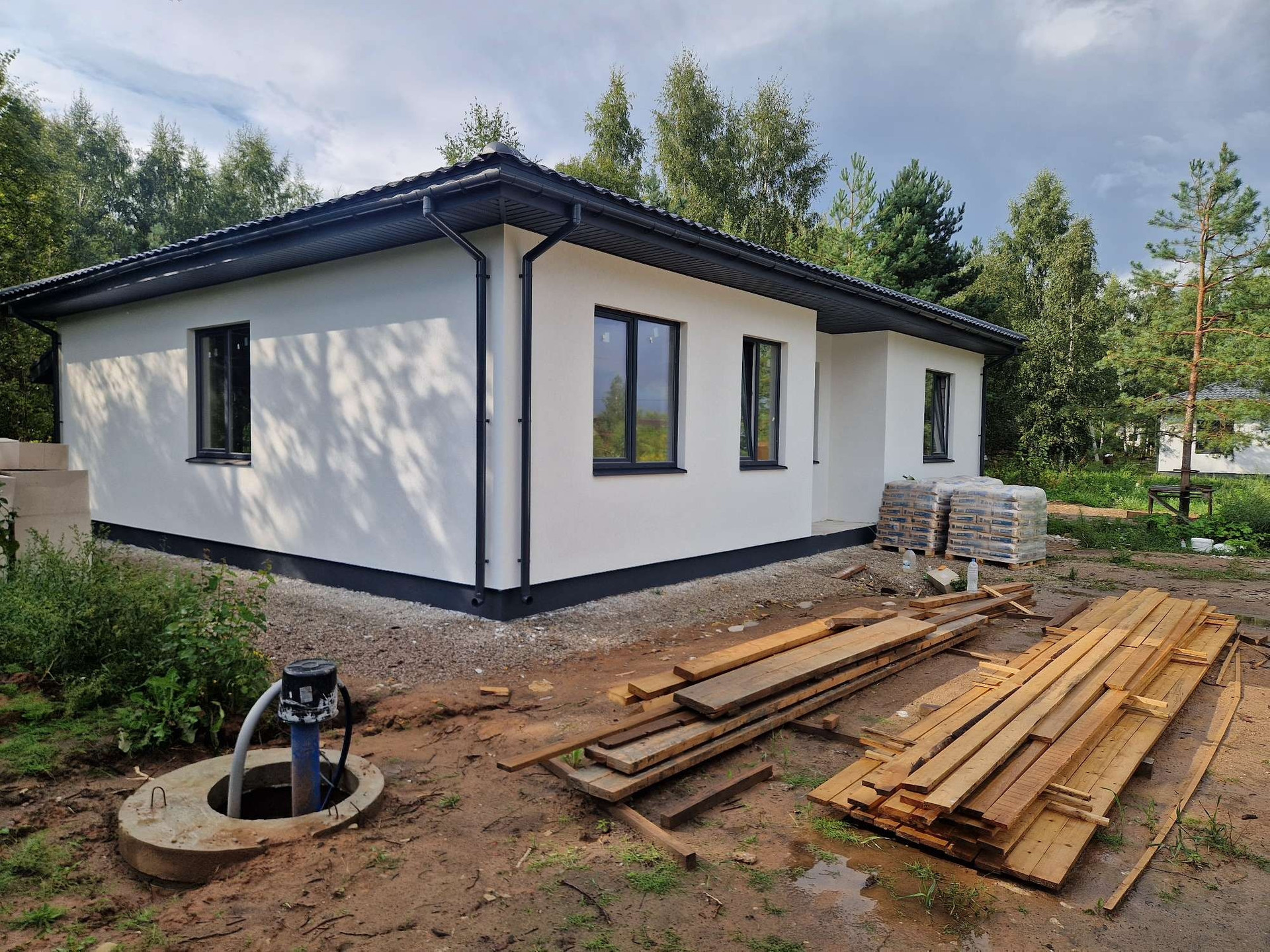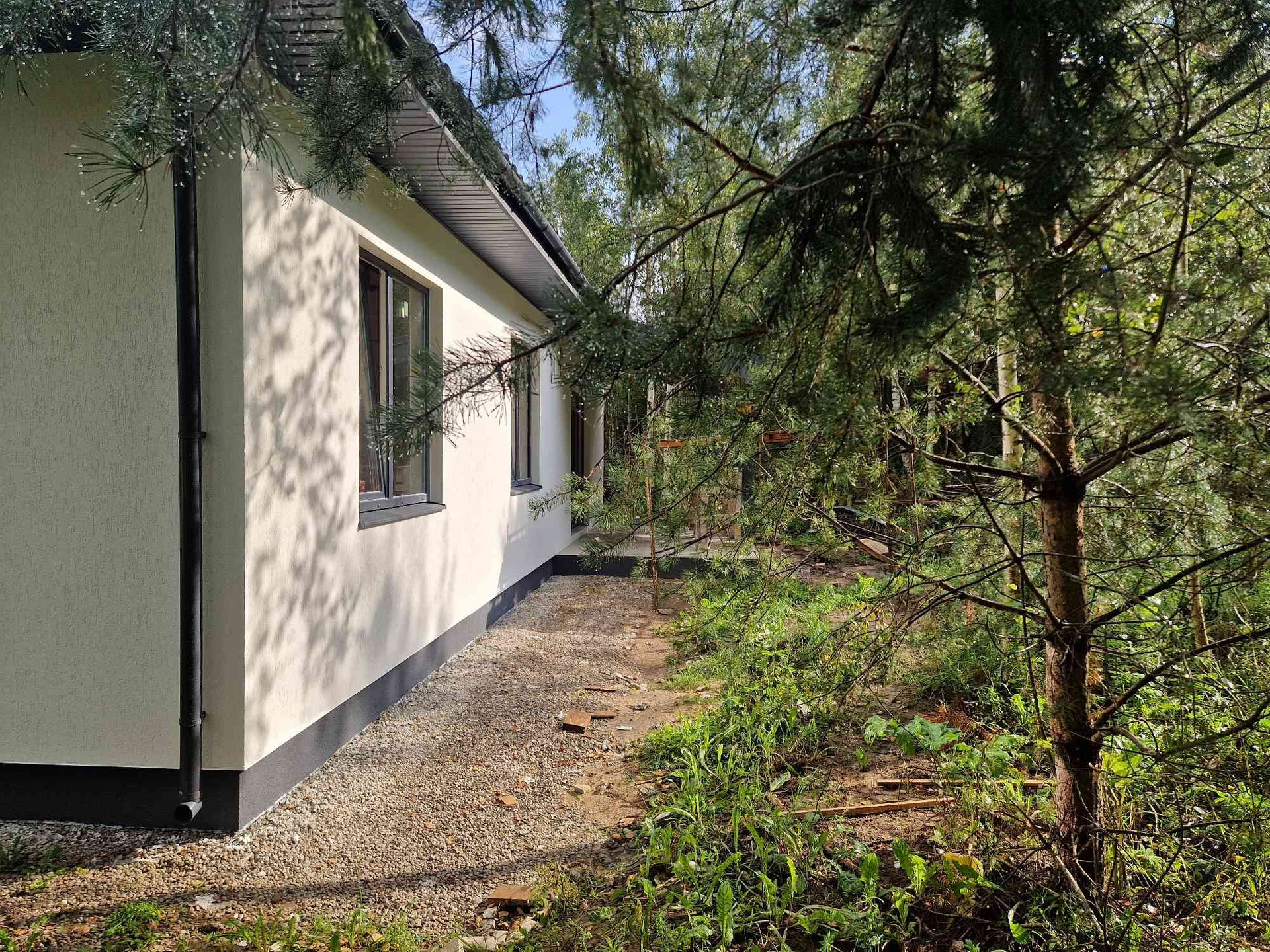 очень уютный и крепкий дом три спальни просторная кухня совмешенная с гостинной и выходом на терассу участок 16 соток сухой ровный минимум соседей в посёлке есть детский сад ,школа ,магазин