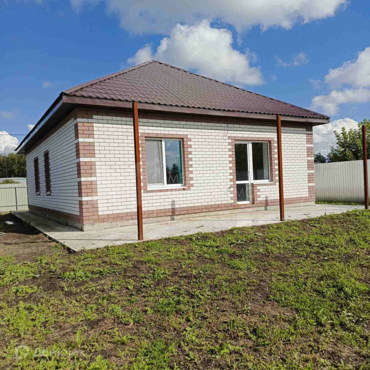 Дом ОДНОЭТАЖНЫЙ 86 кв м, формат 3 плюс,  на УЧАСТКЕ 6 соток. Дом выполнен из керамзитных блоков с утеплителем и кирпичной облицовкой. Имеются все КОММУНИКАЦИИ: электричество, газ, переливной септик из ж/б колец, скважина.  Участок огорожен забором с кованными воротами.