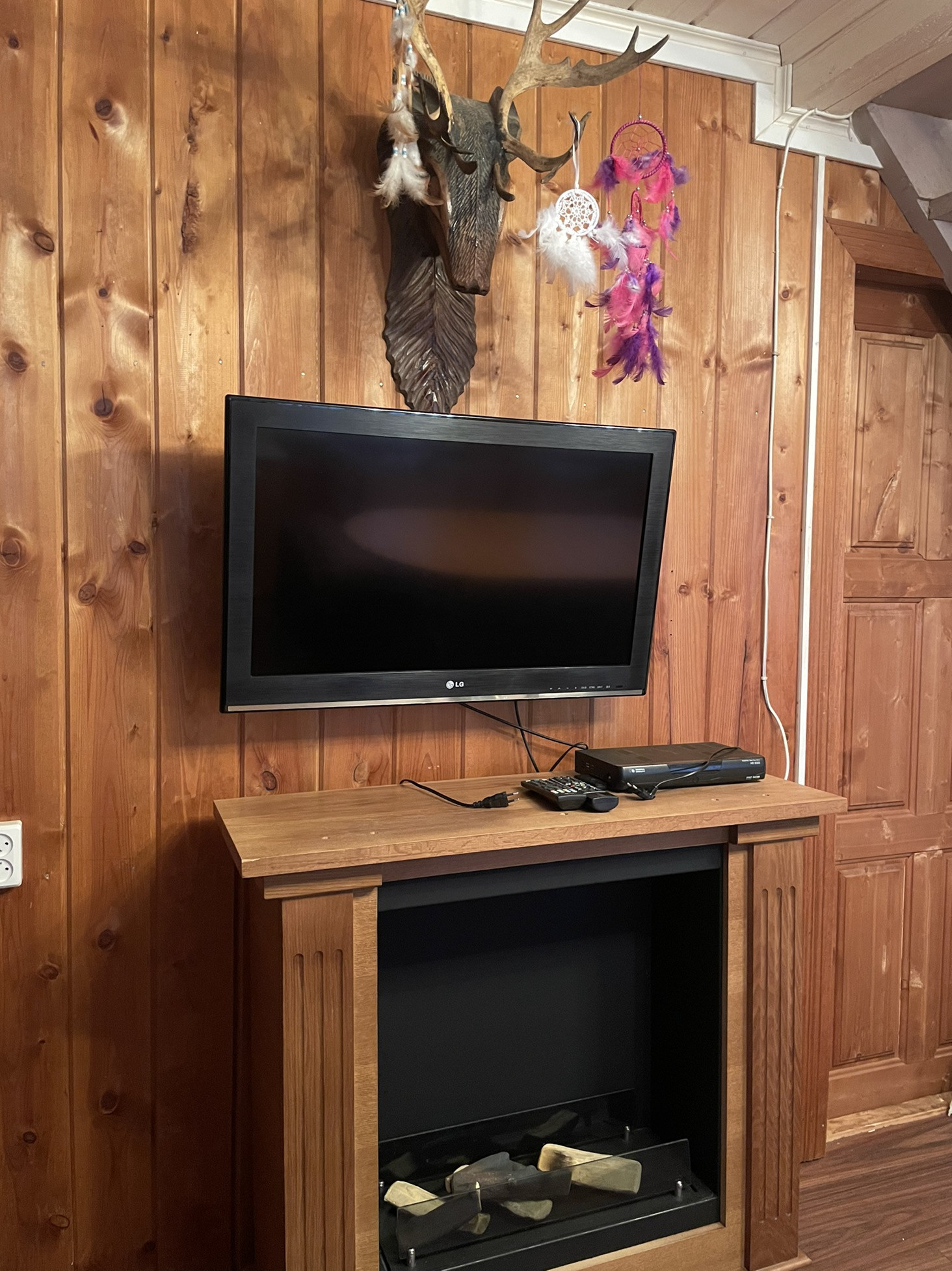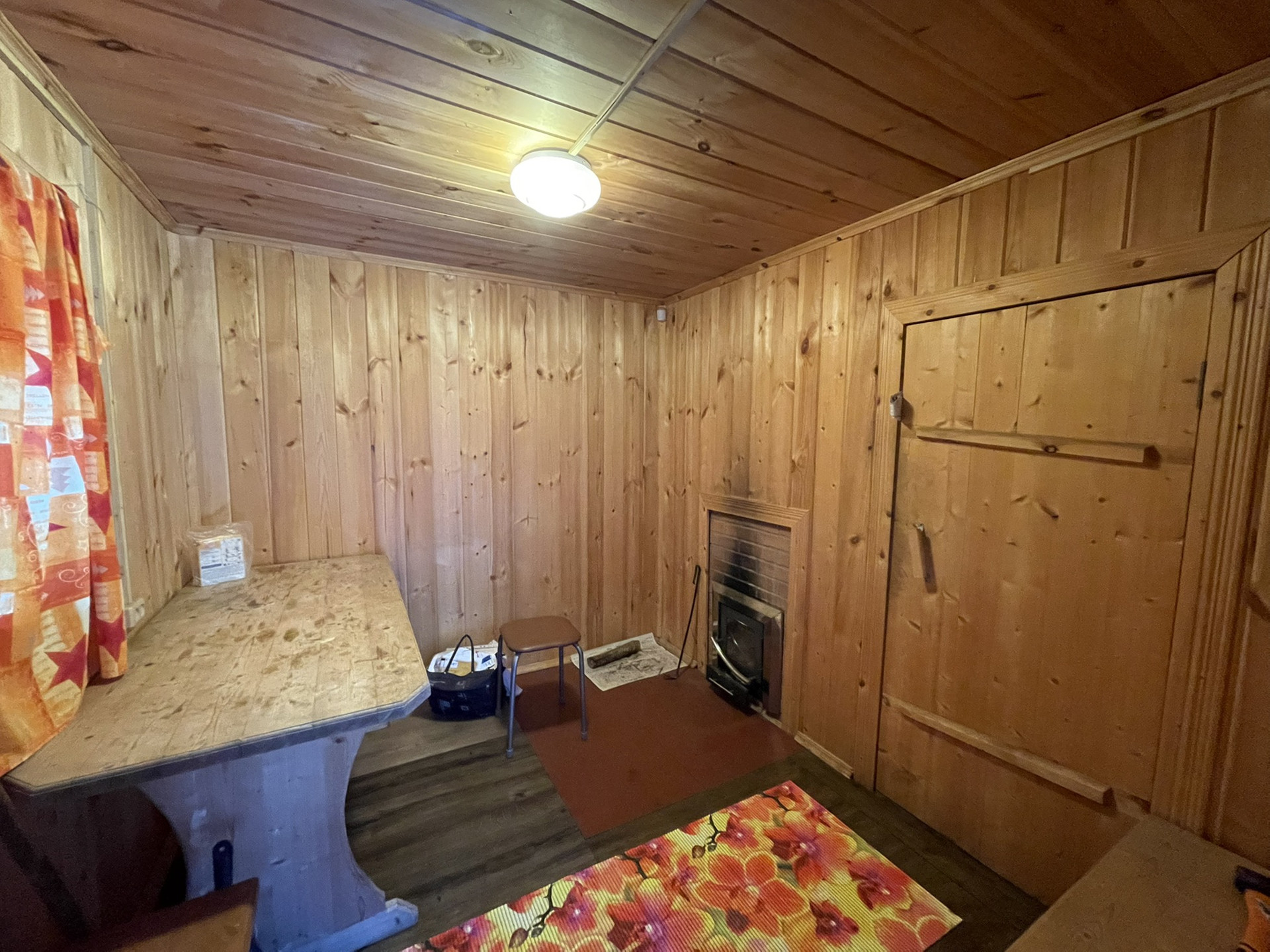 и кухня-столовая с камином, а так же кладовая комната.