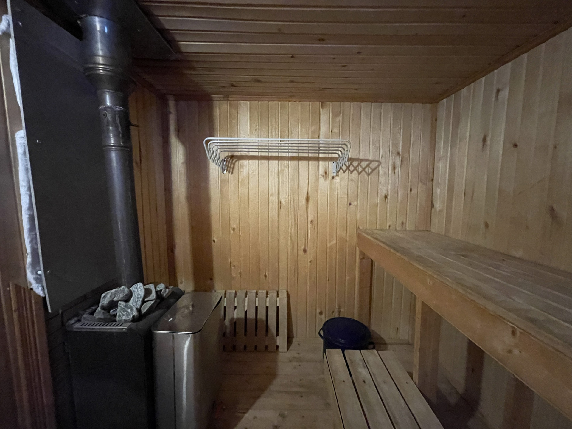 На участке действующая баня, дровеник, сарай, два новых туалета в хорошем состоянии, беседка с видом на большой самодельный водоём, выполнен небольшой ландшафтный дизайн.