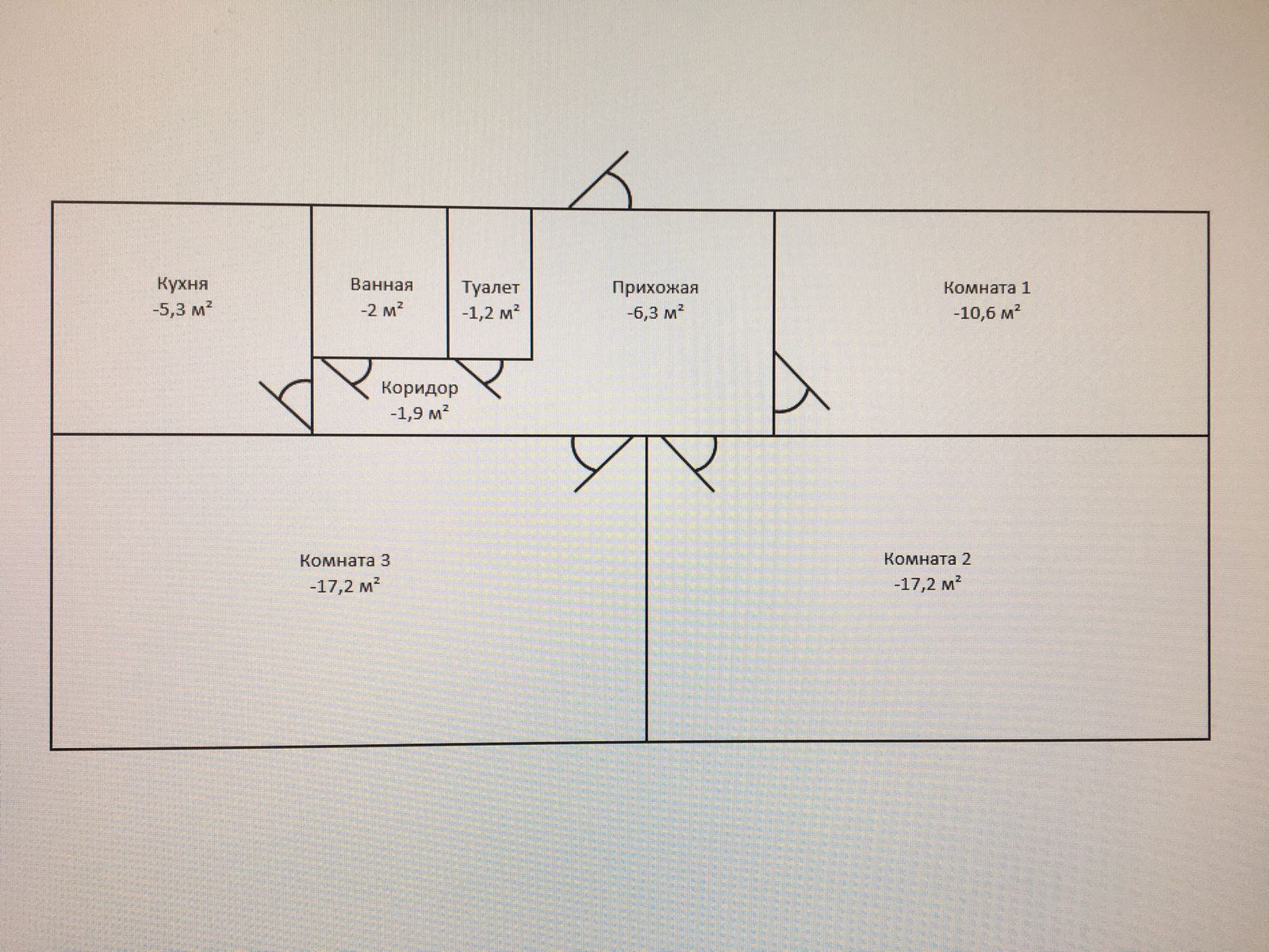 Общая площадь 61.7 м2