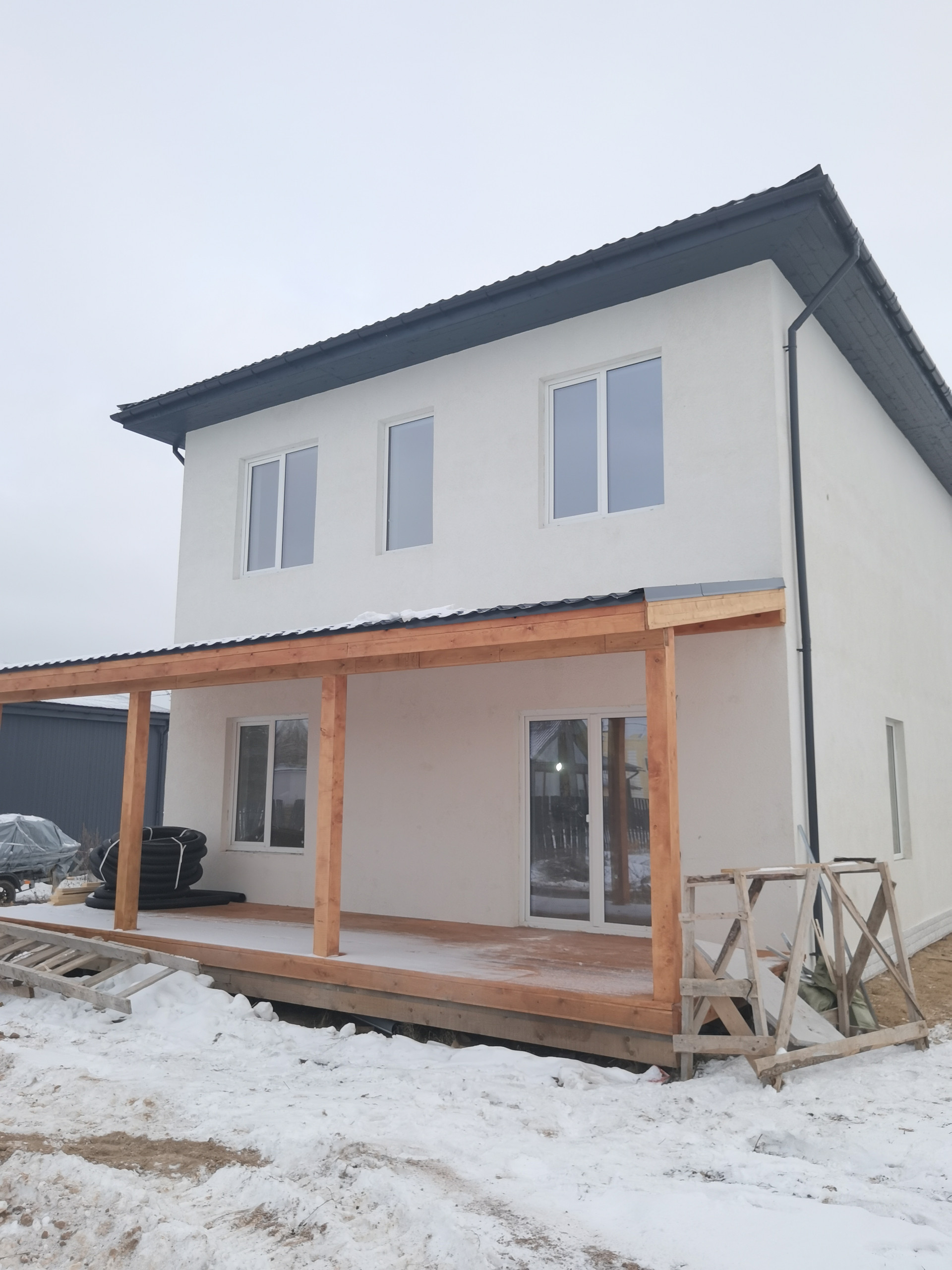 Продам коттедж 153м2 на участке 10 соток с полной отделкой. Дом построен на монолитной плите 300мм, с армированием в 2 ряда ячейка 25мм, стены газобетон лср 300мм d400 с утеплением фасадным утеплителем роквул оптима д 100мм, фасадная штукатурка, кровля вальмовая металлочерепица 0.5мм, утепление минеральной ватой 250мм, монолитное перекрытие плитами. Высота потолков 2,95м 1 этаж, 2.8м второй. В доме тёплые водяные полы на 1 и 2 этажах, коллекторная разводка хв и гв трубами pex-a. На первом этаже на полу керамогранит, на втором ламинат. Два санузла, на первом этаже душевая, раковина и инсталяция, на втором просторный санузел с душевой, ванной, раковиной и инсталяцией. Стены и полы в санузлах из керамогранита 60*60, в душевых 15*60. Чёрная сантехника, тропические души. На втором этаже три спальни 15, 13 и 11м2, гардеробная. На первом кухня 13м2 с гостиной 22м2, гостевая/кабинет 9.5м2, котельная 5м2, просторный входной коридор, выход на крытую террасу 20м2. Лестница на второй этаж из металлического профиля, ступени деревянные. Окна рехау 70 профиль, двойной стеклопакет с энергосбережения и покрытием solar. Двери завод Браво. Светильники управление с пульта. Входная дверь с терморазрывом. Разведена вентиляция. Коммуникации городской водопровод, электричество 15квт, биостанция 5, газ на границе участка. Прямая продажа от собственника. Дом зарегистрирован и подходит под ипотеку.