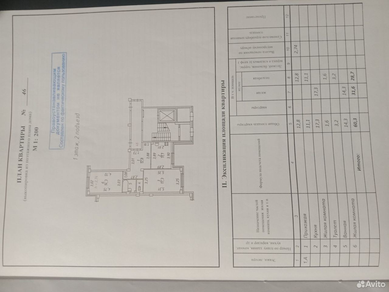 Общая площадь 60.3 м2