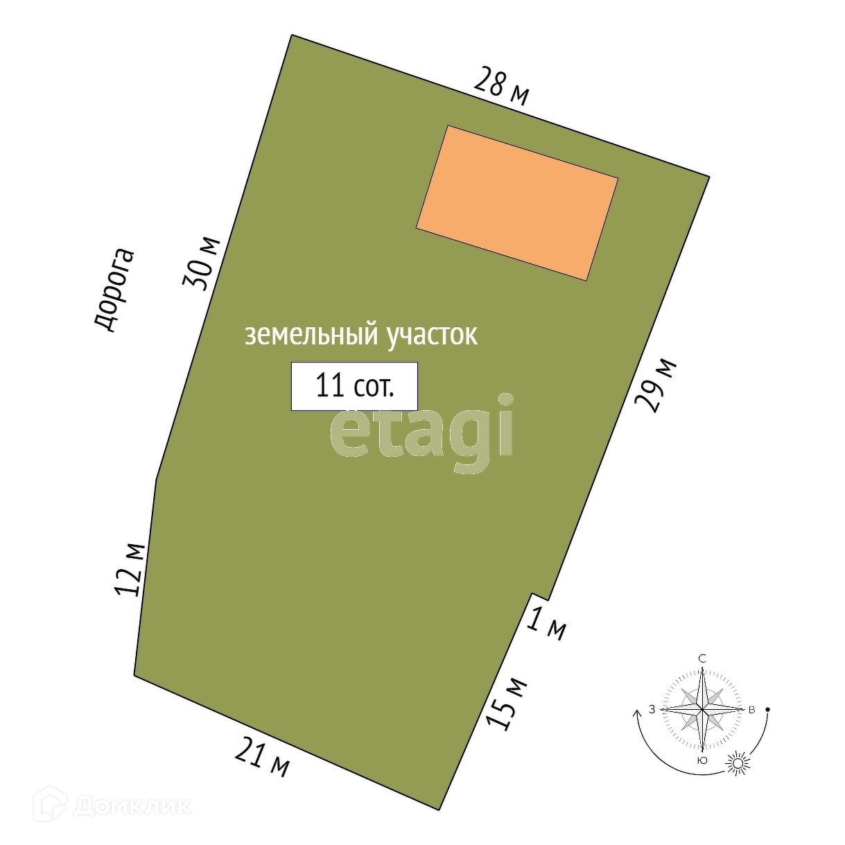 Площадь участка 11 сот.