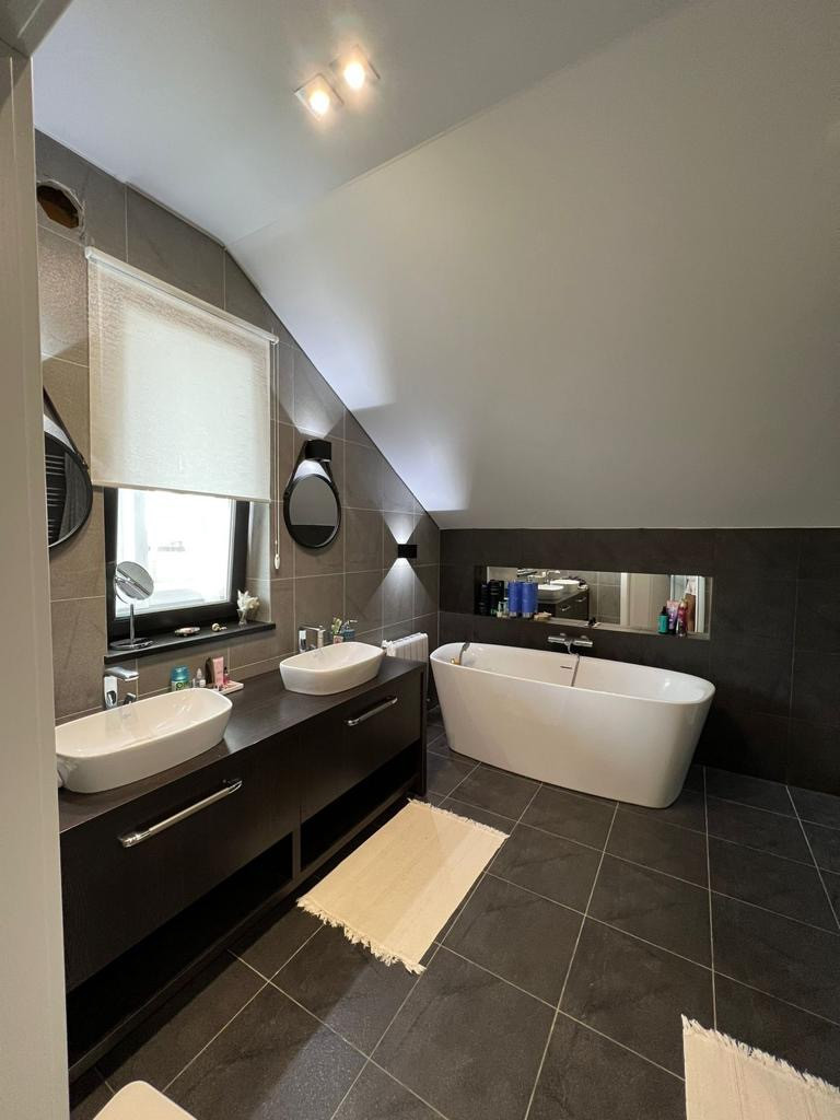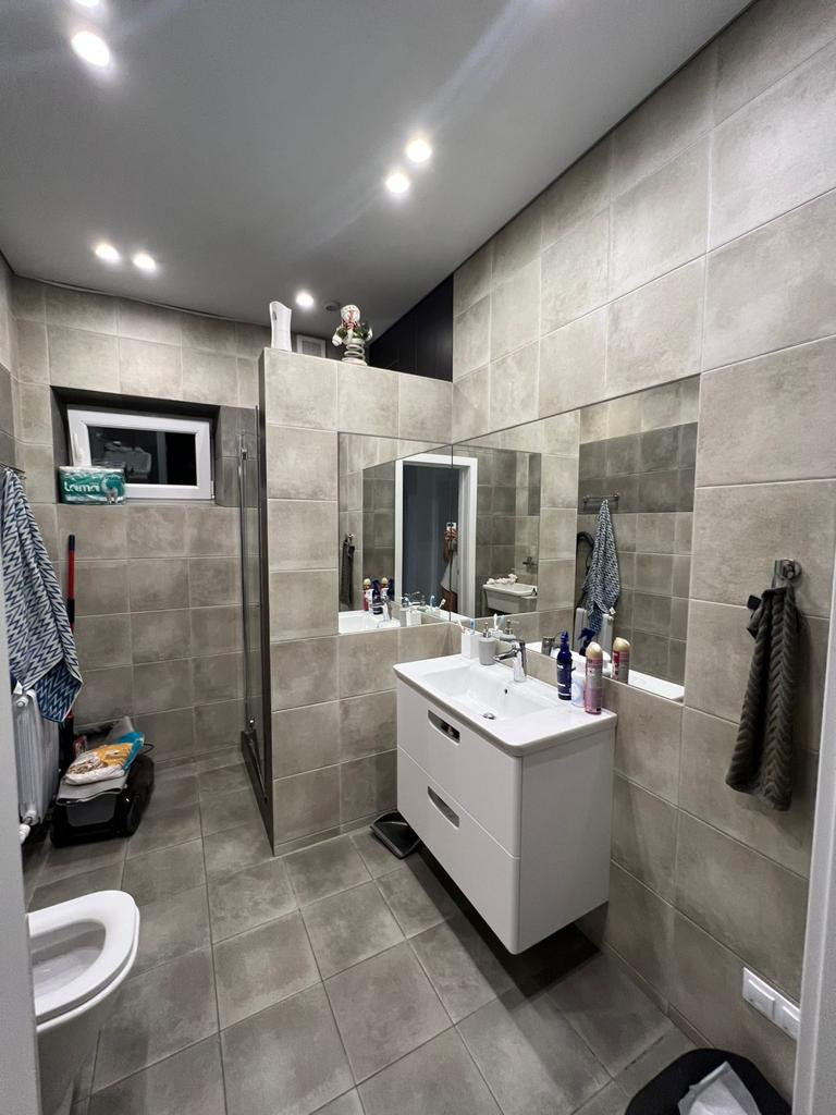 Два санузла, натяжные потолки, 2 котла (газовый и электрический), на участке много кустарников и сосен, площадка под мангал и теплица, отапливаемая веранда с панорамными окнами и выходом на террасу, теплые полы на крыльце, 1 этаже и санузле на 2 этаже
