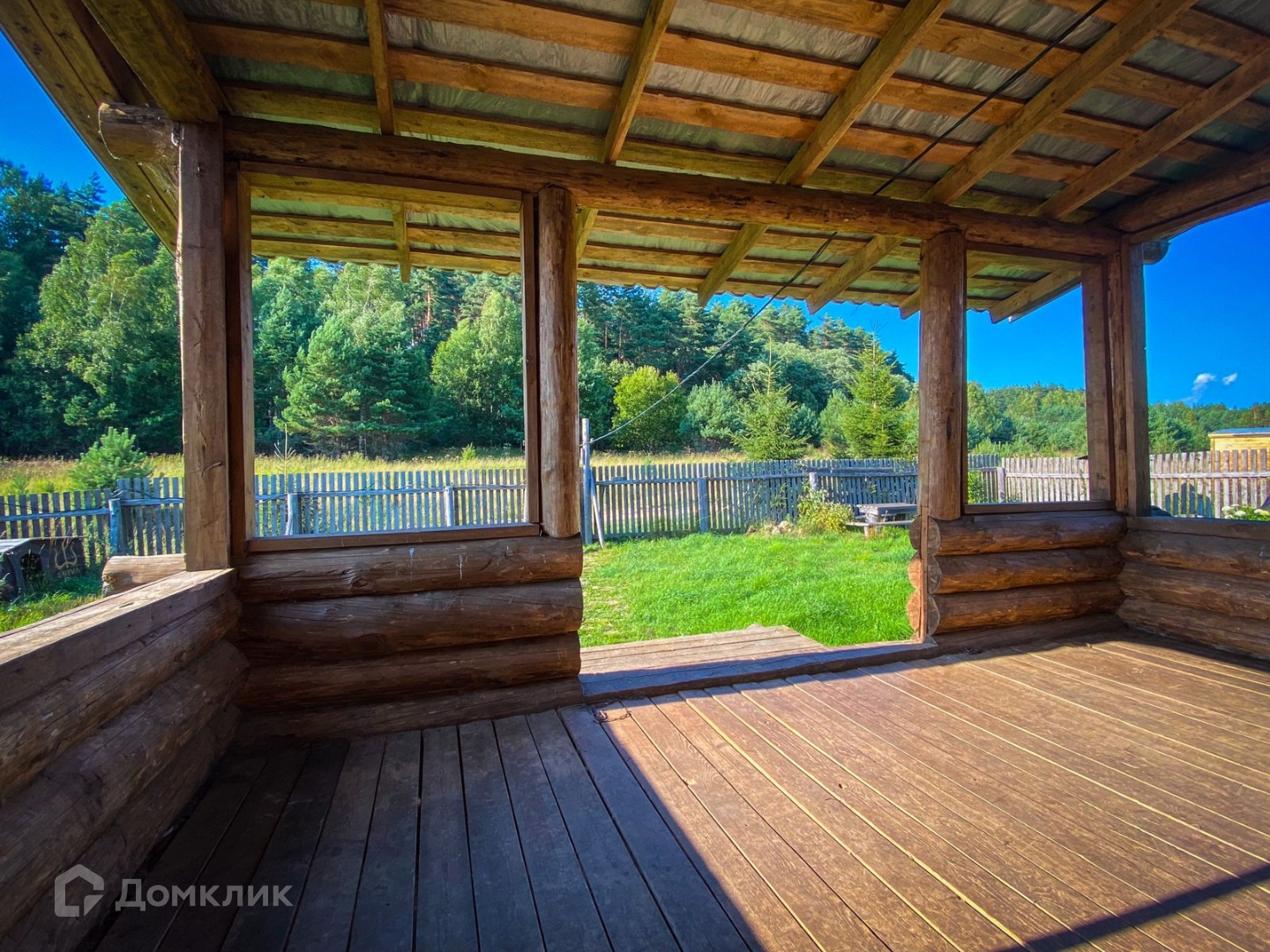 Веранда 24 кв.м. выходит на закатную сторону, солнце садится за сосновый лес