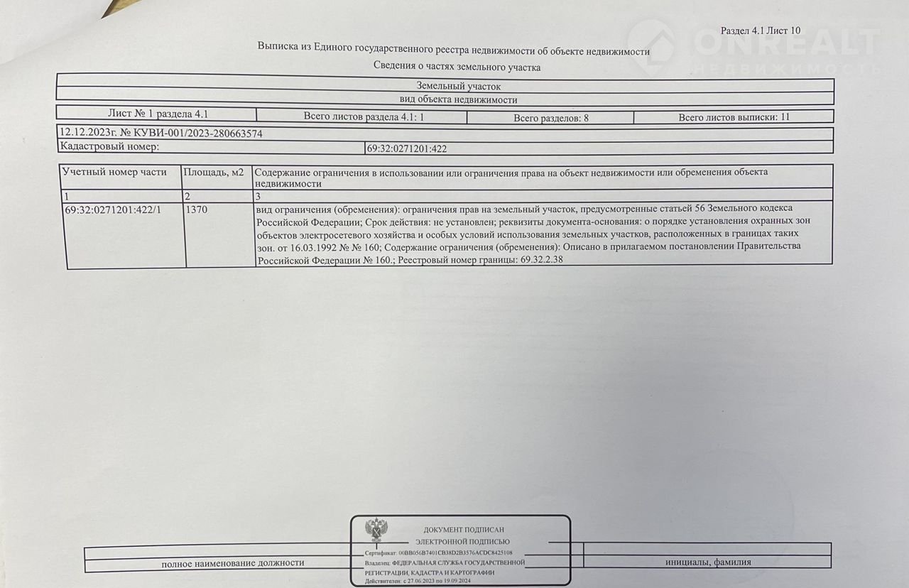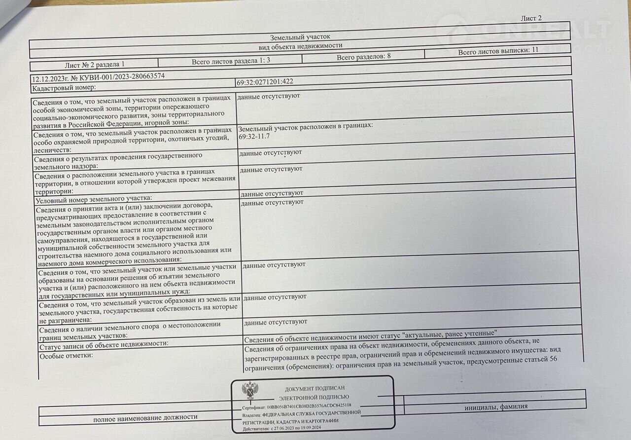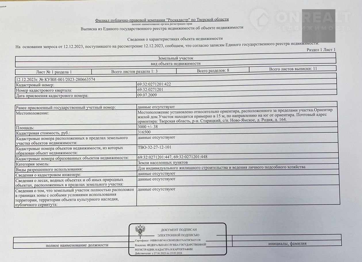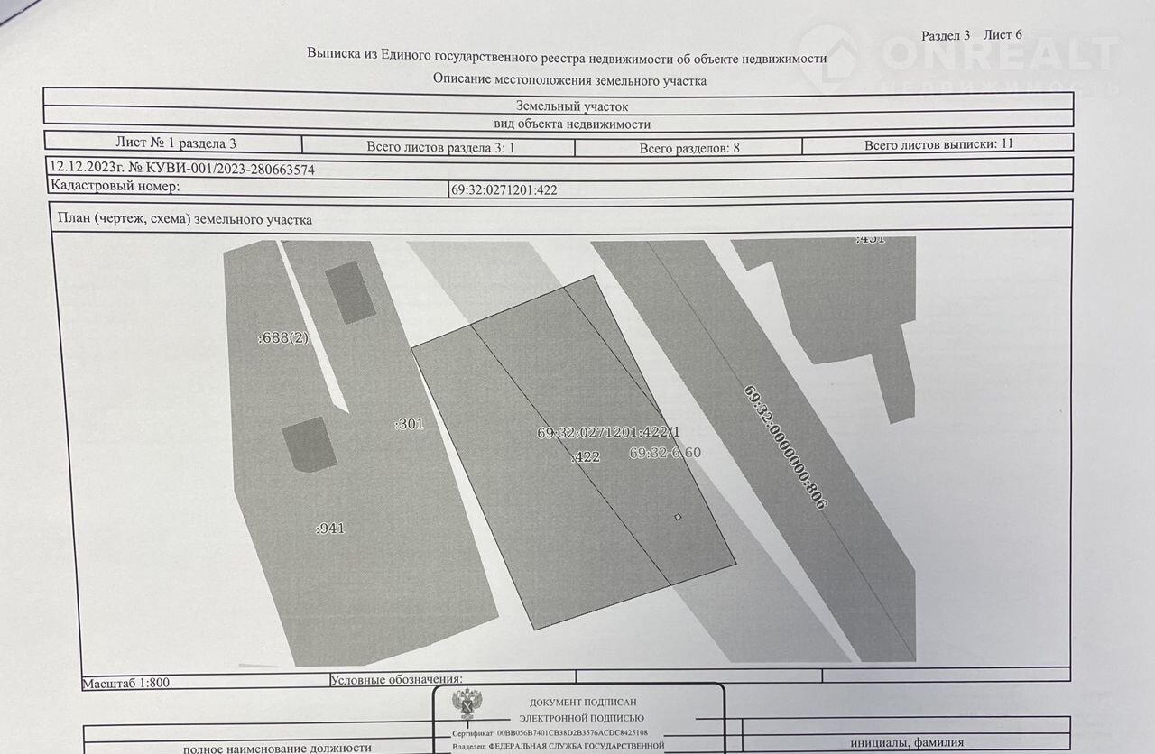 Кадастровый номер 69:32:0271201:422