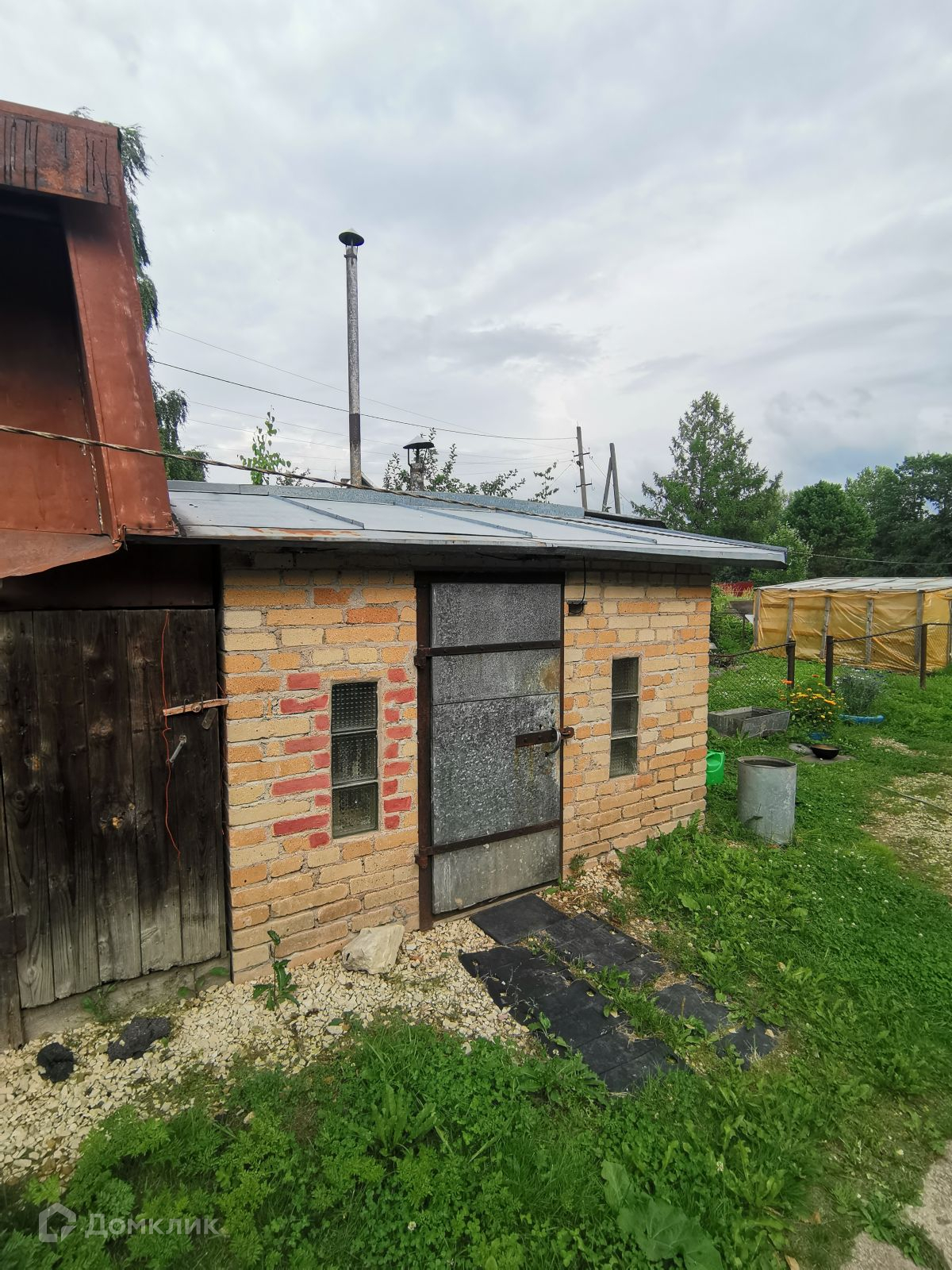 Русская баня, дровник на металлическом каркасе, погреб, сарай, две теплицы.