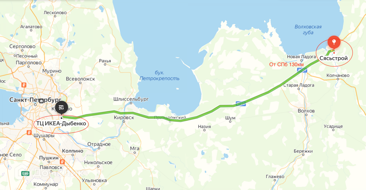 От СПб 130 км. по Мурманской трассе ( дорога отличная)
