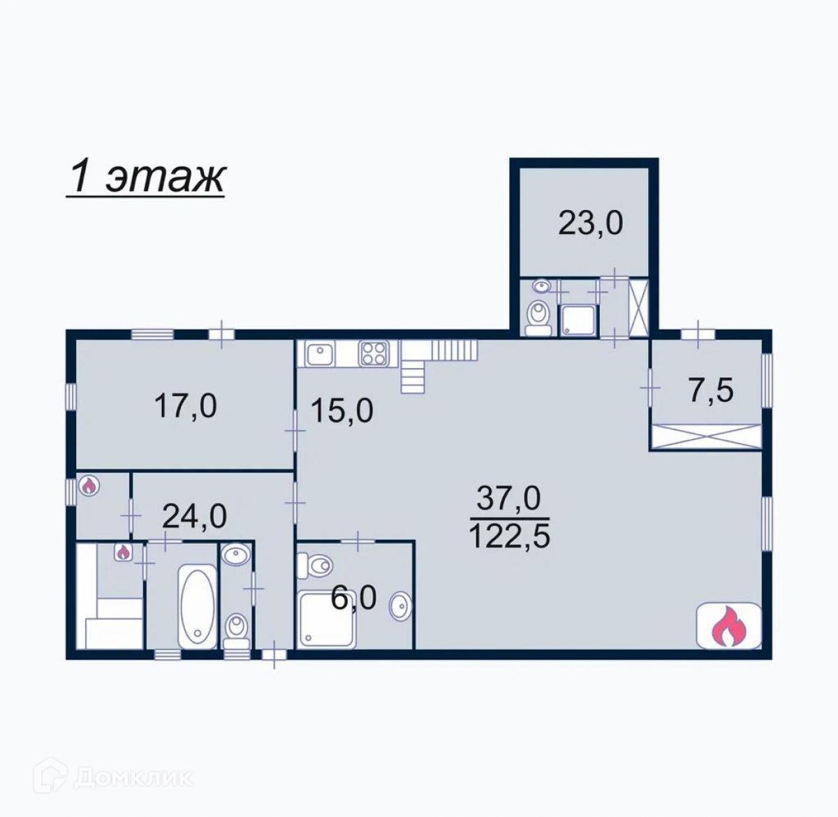 - В доме, в общей сложности 4 с/у и 2 душевых