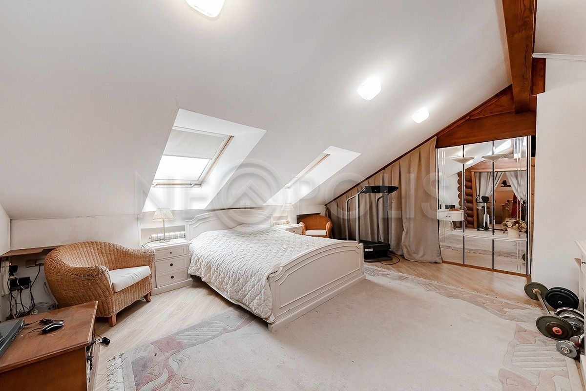 Мансарда: холл-спортзал, спальня и гардеробная.