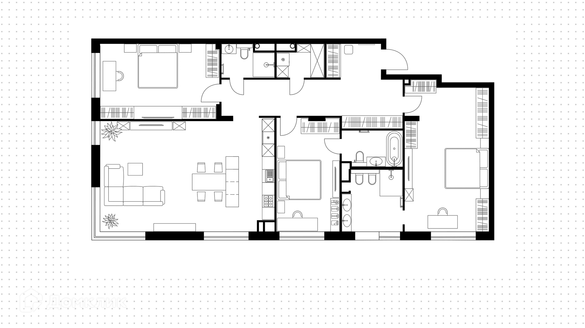 ID 203 158. Просторная квартира с 3-мя спальнями общей площадью 147 м² в клубном комплексе Vnukovo Country Club. Квартира без отделки расположена на 4-м этаже в корпусе 5. Благодаря большим окнам и высоким потолкам пространство наполнено светом. Из окон открывается вид на благоустроенную территорию комплекса.