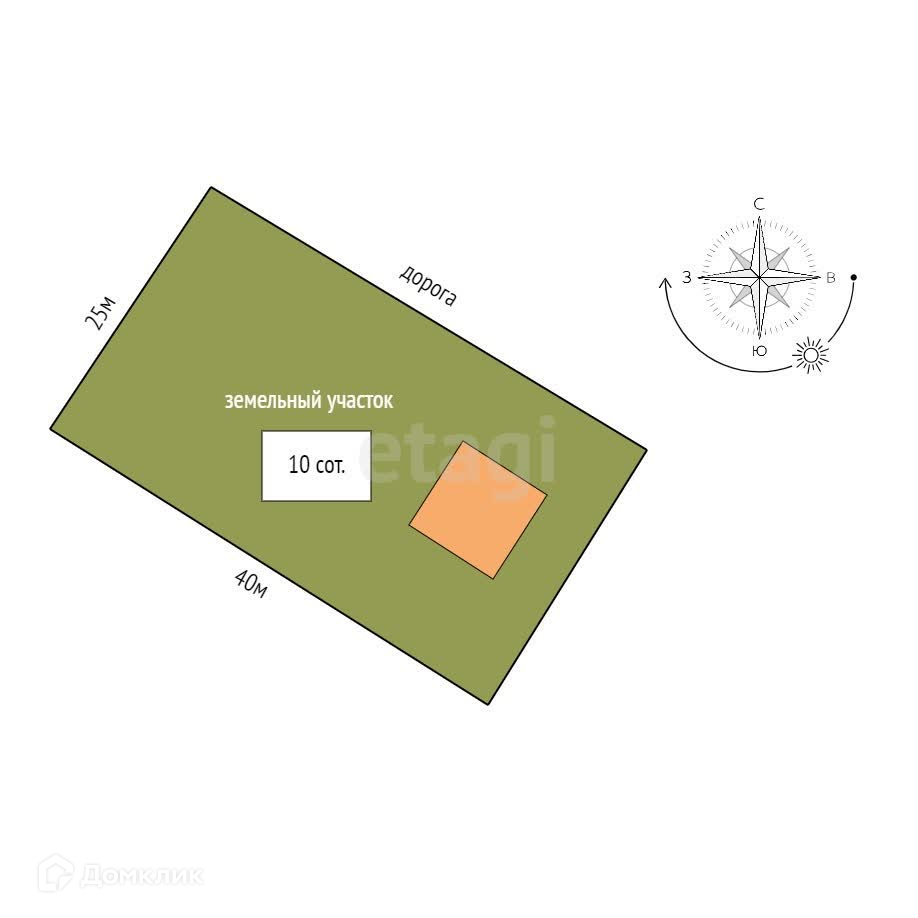 - площадь участка 10 соток;