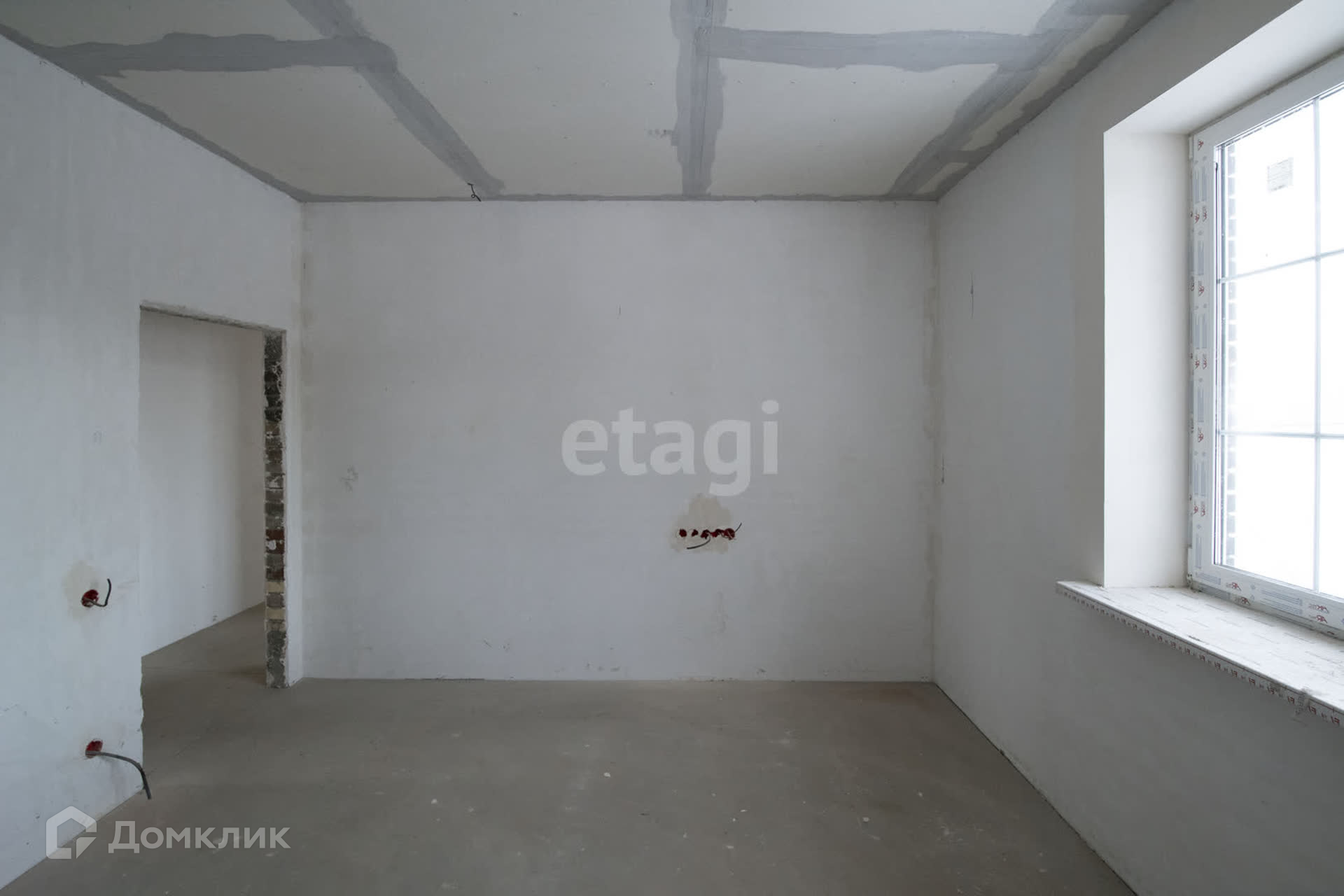 В доме выполнена вся пыльная работа: стены готовы к финишному покрытию, разведены инженерные коммуникации, теплый водяной пол, выполнена стяжка пола.