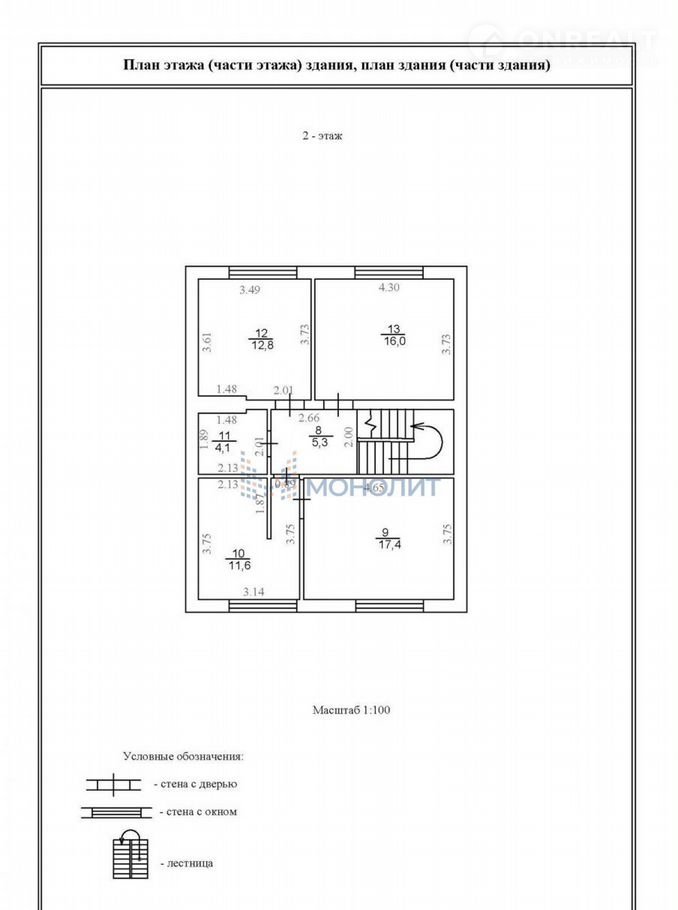 2-й этаж - три комнаты 16/12.8/17,4 кв м