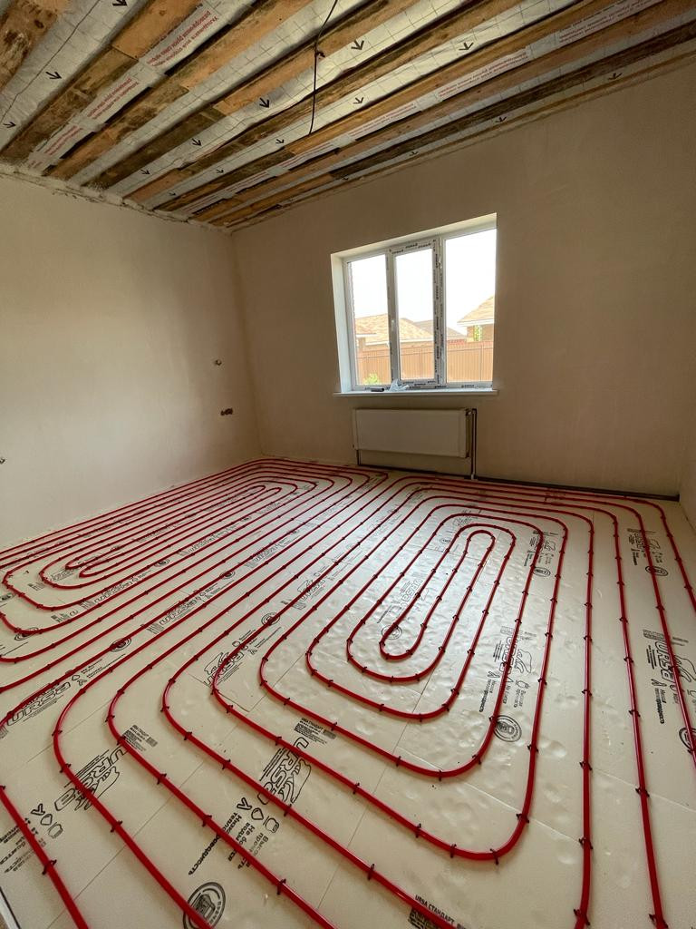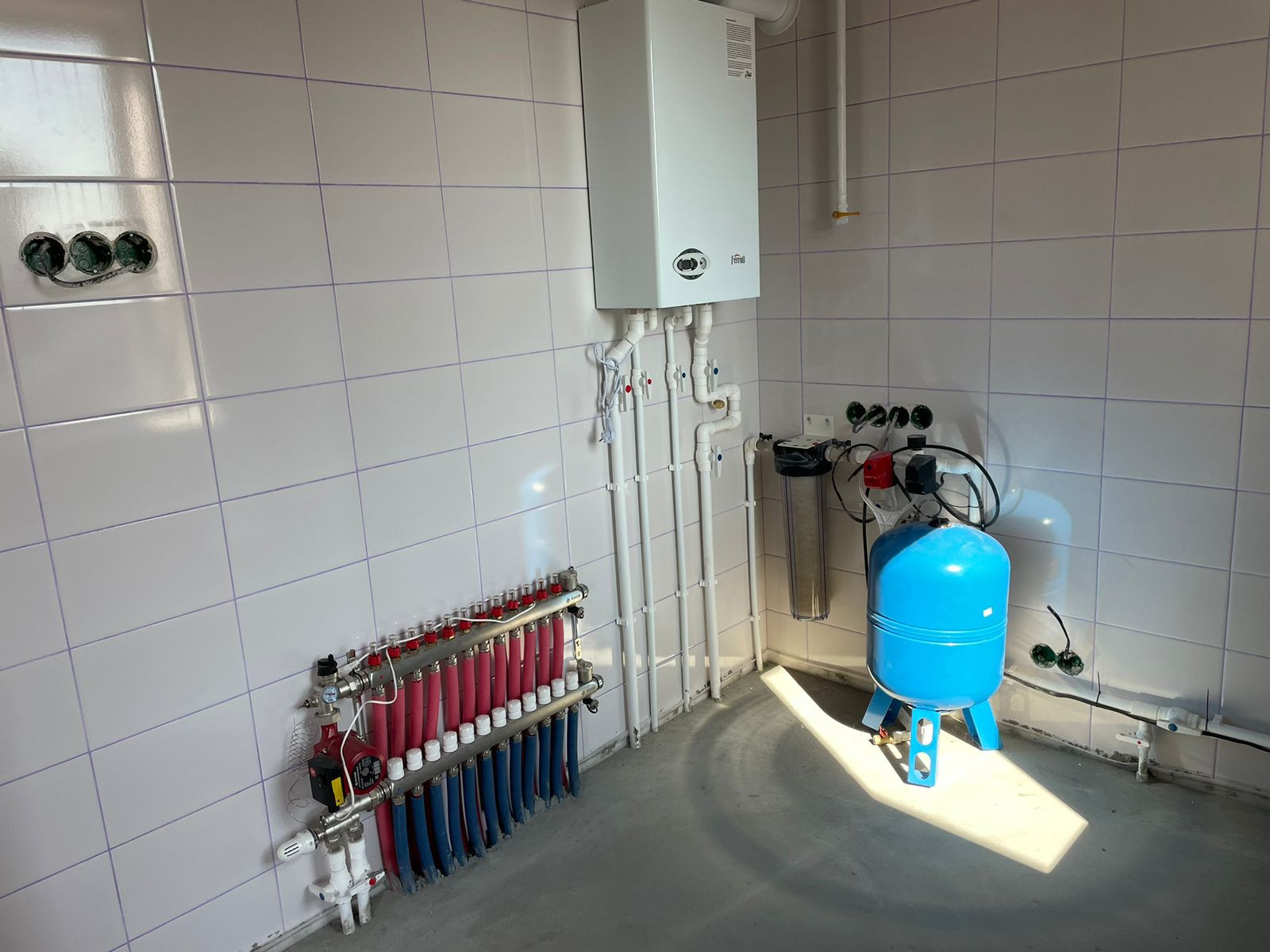 Отопление: Котел Ferroli Divabel 24 кВт 2-ух контурный, Теплый пол 12 контуров труба 16*2,0, Утеплитель URSA 30 мм.