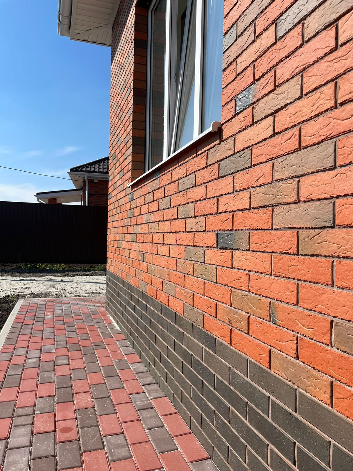 Фундамент: глубина 1300, ширина 400, бетон М200 Курский Бетонный Завод. Материал стен: пеноблок АЭРОБЕЛ 300 и облицовочный кирпич: цоколь - Красная Гвардия Neo Plus М175; стены - Красная Гвардия Аккорд Корал 1NF М175. Кровля: балки - 100*150, стропила 50*150, мауэрлат 50*150; утеплитель URSA TERRA 36PN (лежит в два слоя 100 мм. и 50 мм.), Металлочерепица Grant Line Classic 0.45; водосточная система Grant Line Optima. Отмостка - тротуарная плитка 60 мм.