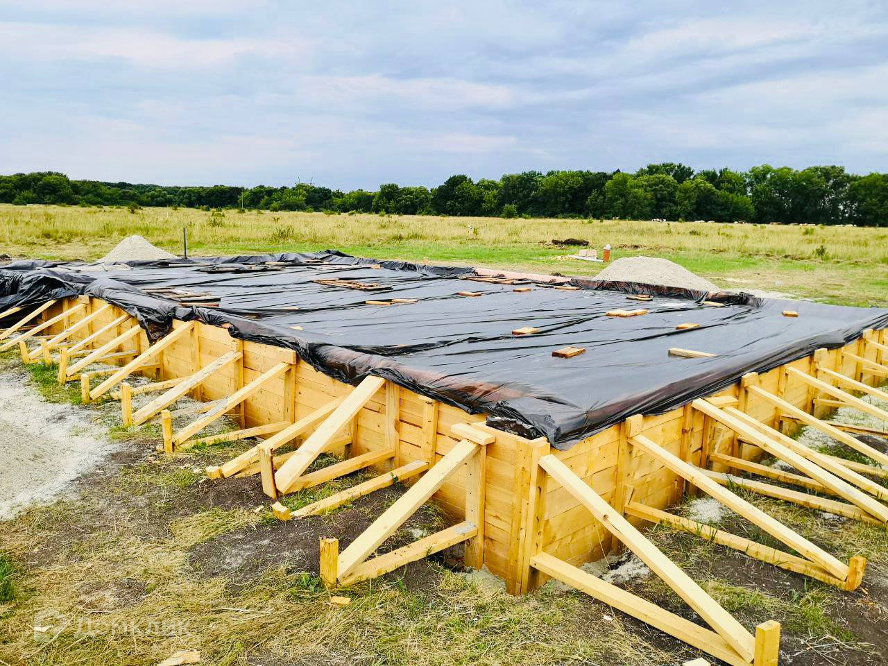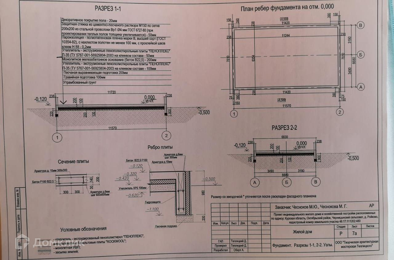 -- На участке есть фундамент, который залит в 2018 году монолитной железобетонной плитой с заглубленным армопоясом по периметру. Плита ровная и прочная, идеальная основа для теплого пола.