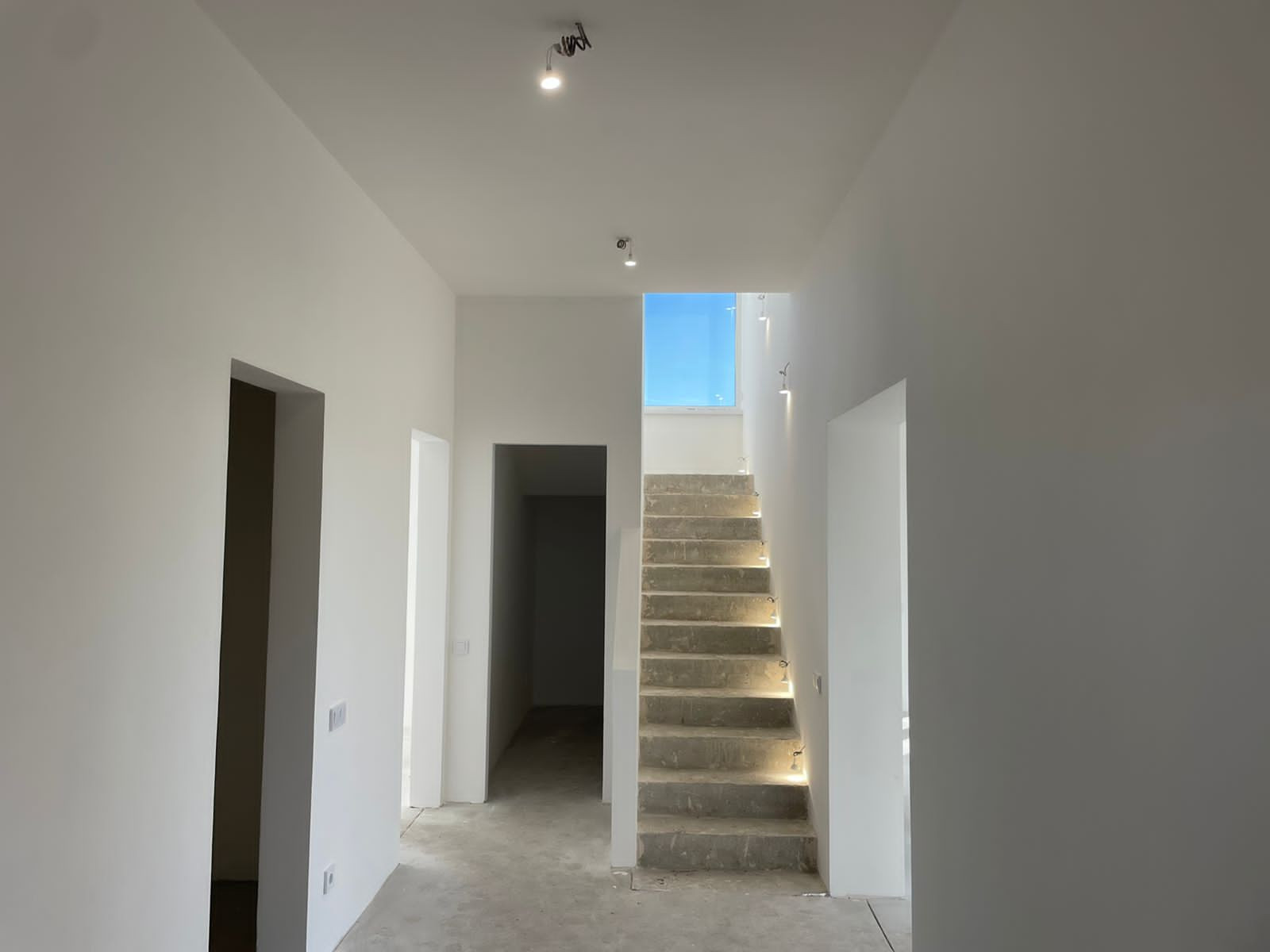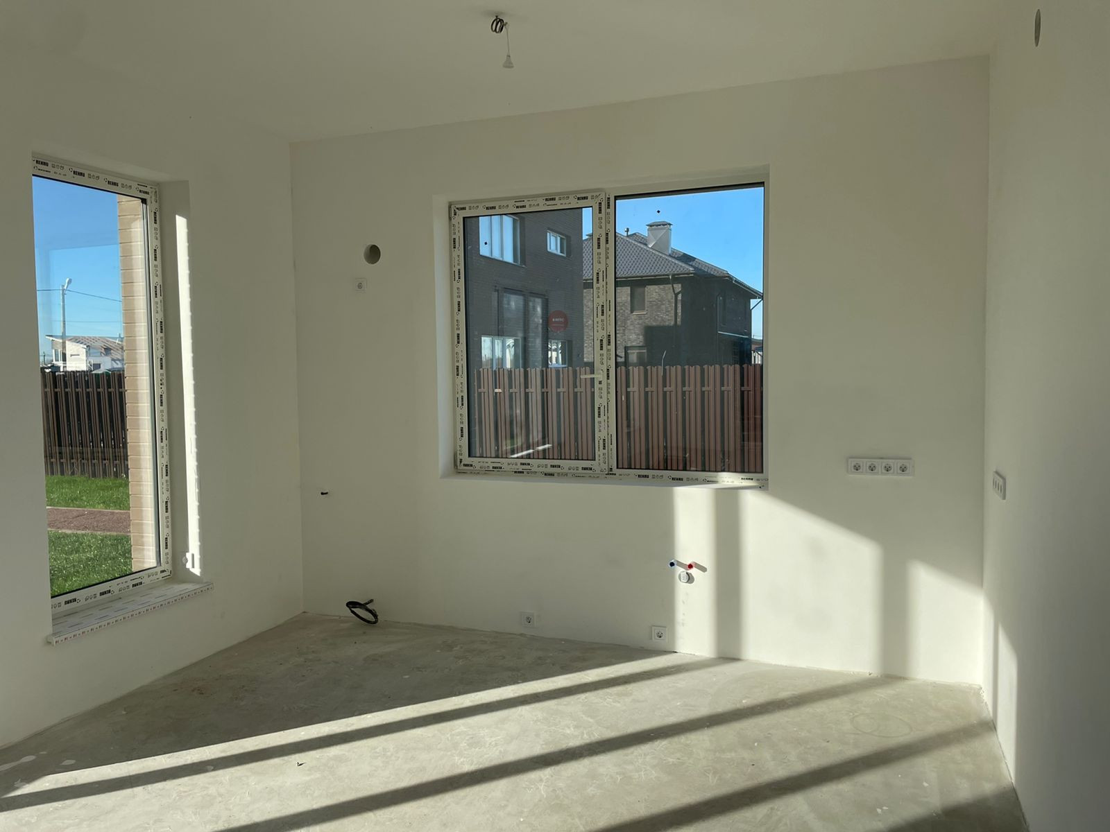 Металлопластиковые окна и двери Rehau delight, двухкамерные стеклопакеты X-ONE, установлены пластиковые подоконники. В каждой комнате приточная вентиляция. Бетонная монолитная лестница на 2 этаж, на лестнице большое панорамное окно.