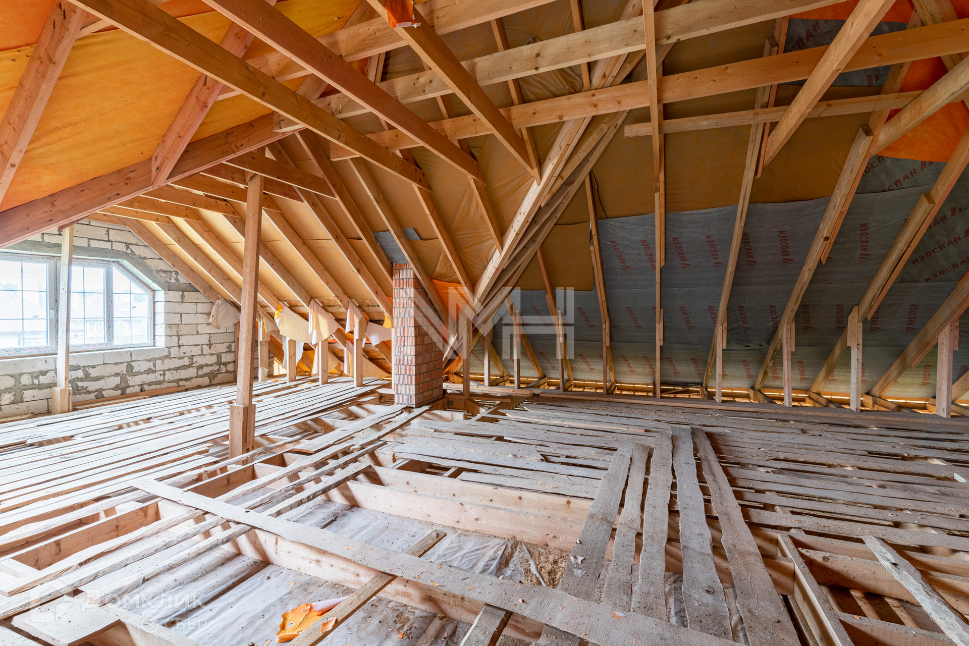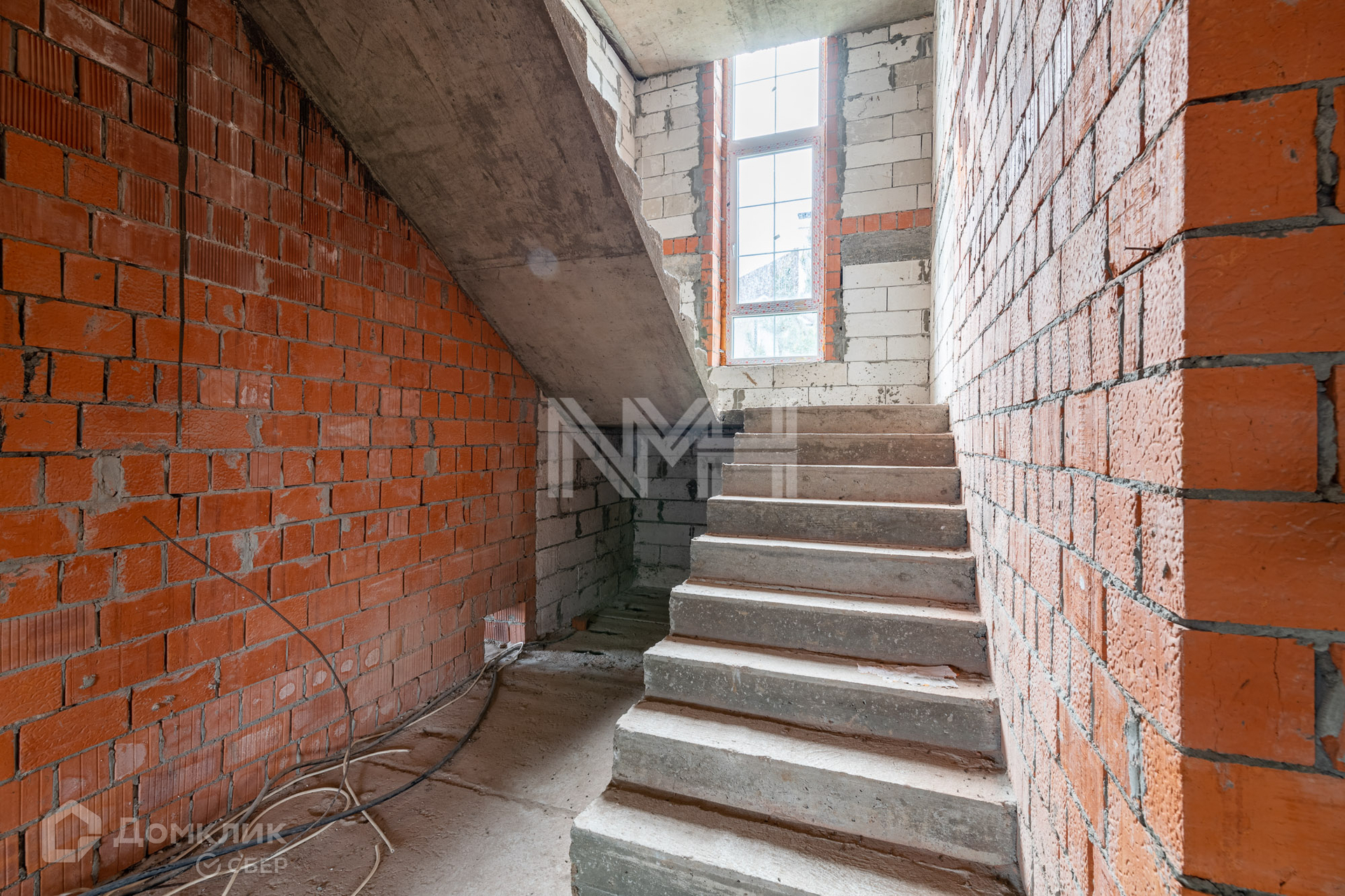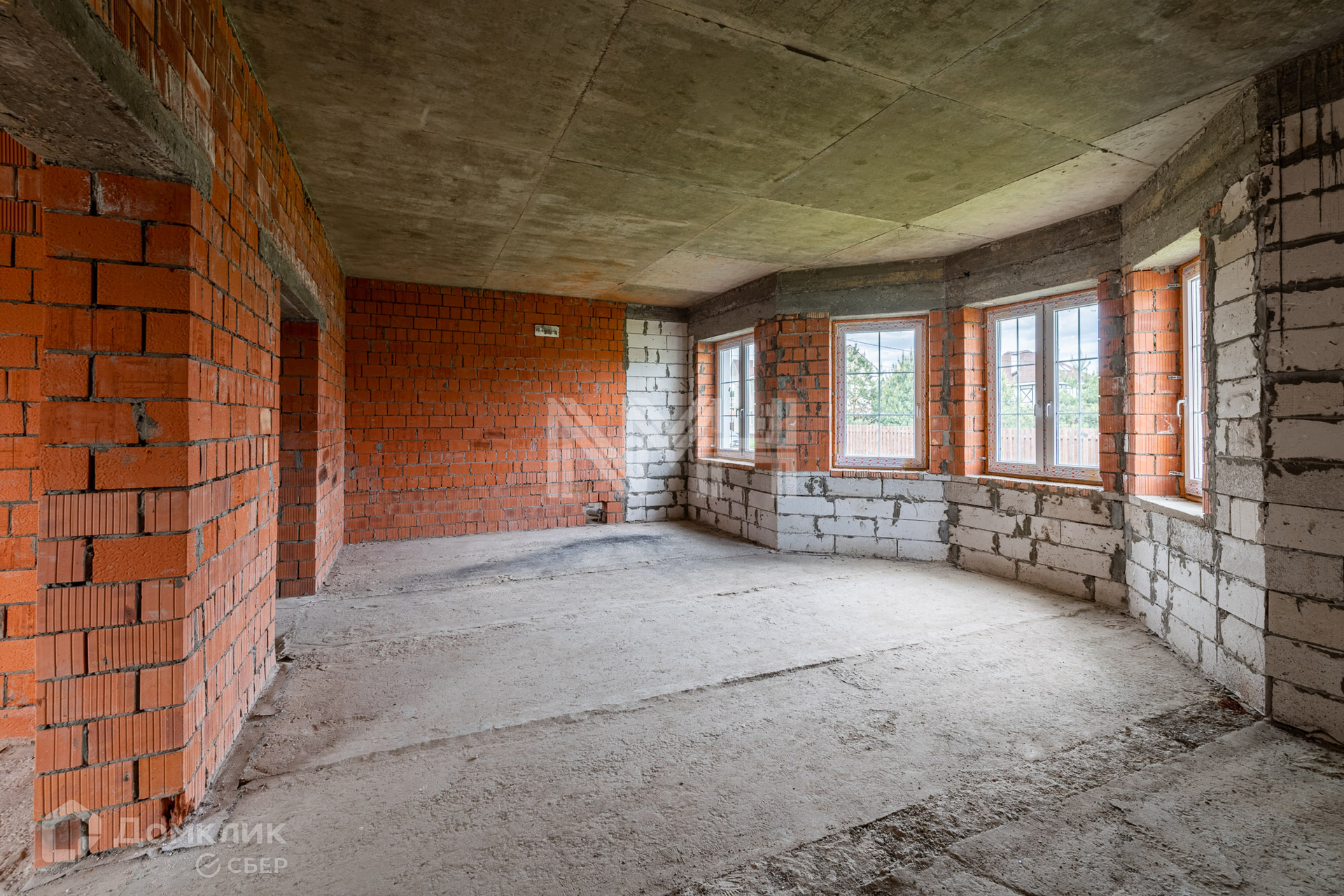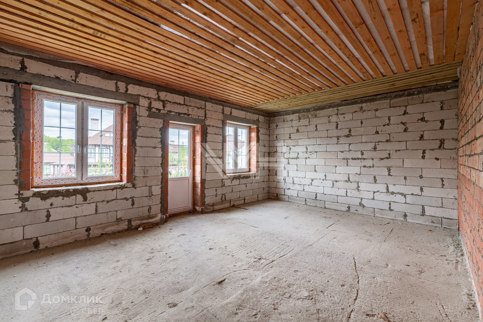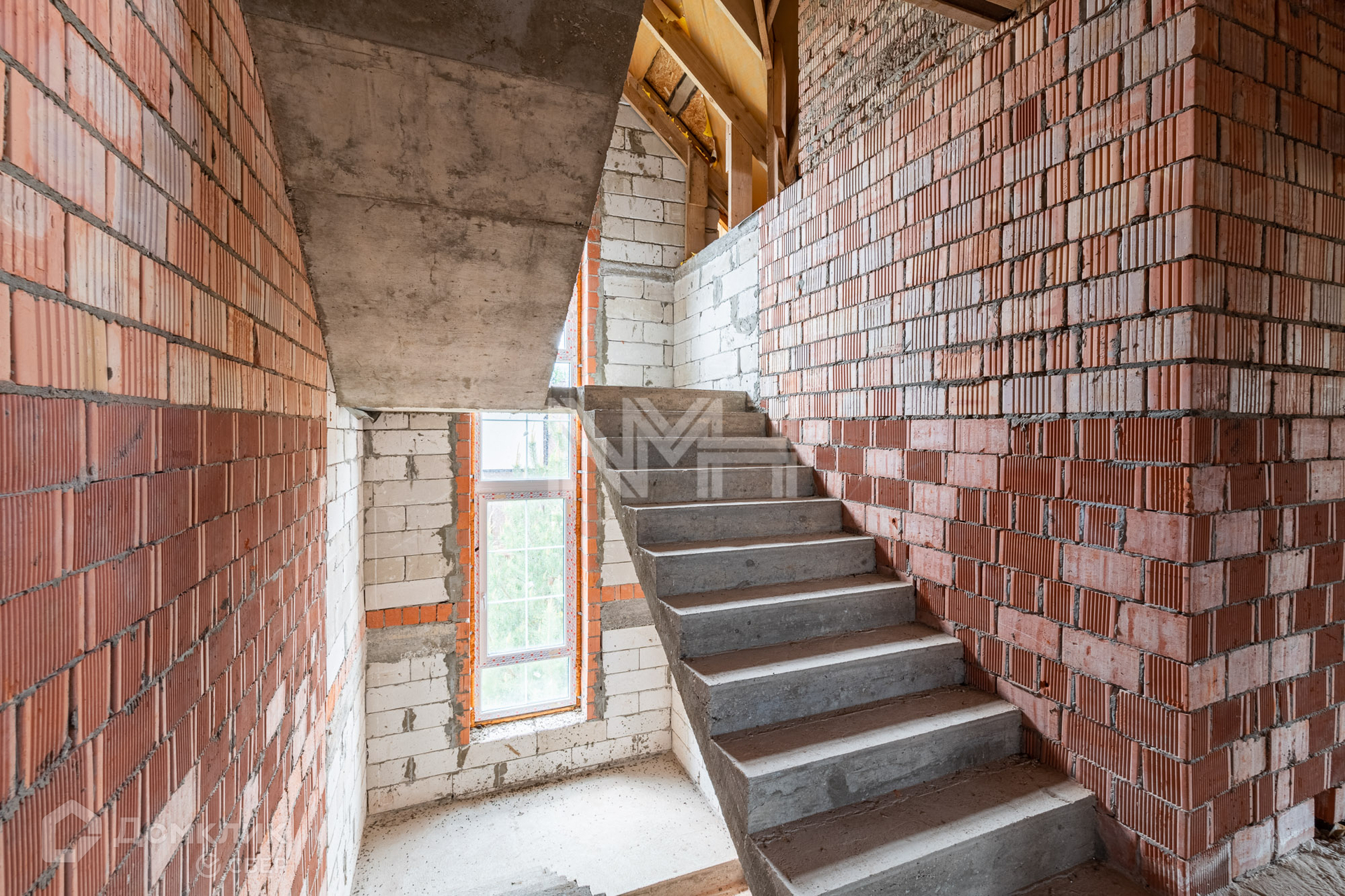 Дом построен из газоблоков, несущие стены — кирпичные, фундамент – ленточный, перекрытия — ж/б плиты, окна — двухкамерные стеклопакеты, наружная отделка — штукатурка. Внутри дома сделаны перегородки, установлена монолитная лестница. В строительстве дома использовались качественные материалы. Все коммуникации подведены. Газ по границе участка.