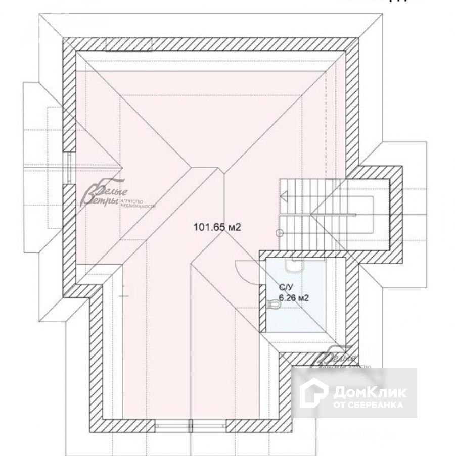 3-ий этаж: мансарда: помещение свободного назначения 101.6 кв.м, с/узел 6 кв.м.