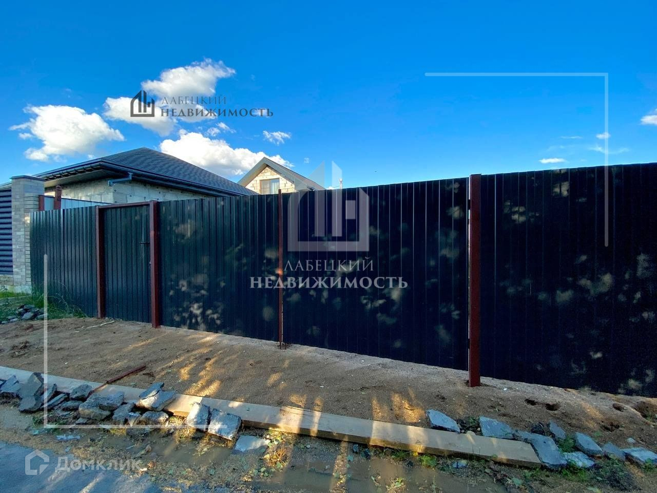 Участок ВЫРОВНЯН, размером 18 м по фасаду/26 м вглубь. Со всех сторон огорожен забором из металлопрофиля. Построили фундамент в 2022г. монолит на дом 120 кв.м,  есть проект и подрядчики. Все коммуникации - городские, муниципальные.