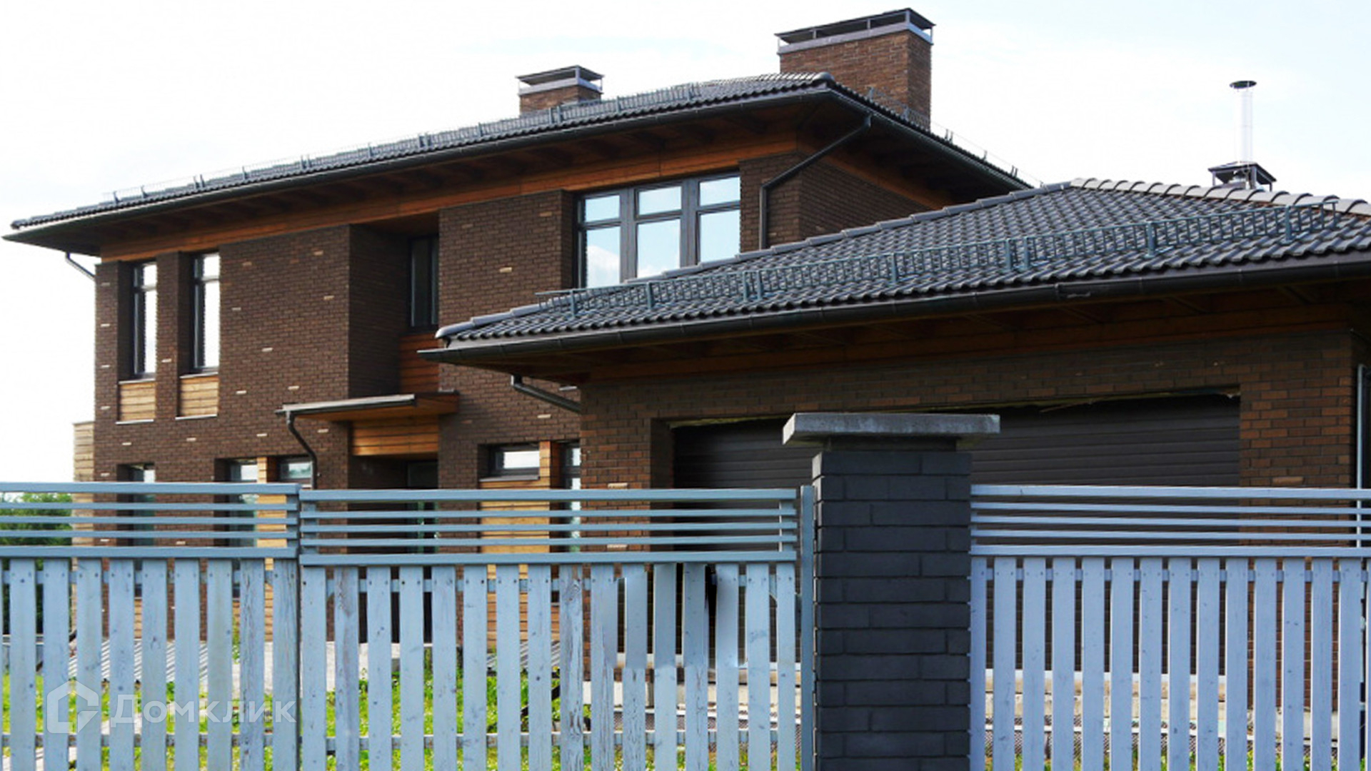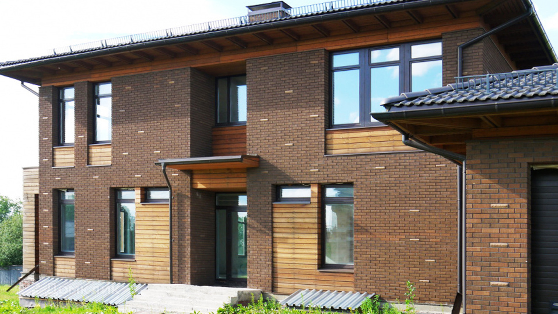 ID 7 319. Барвиха 21. Уютный загородный дом с 5-ю спальнями расположен на открытом участке 30 соток. Фасад здания 793 м² облицован темным клинкерным кирпичом и светлым деревом. Внутри можно выполнить отделочные работы на свой вкус, разместить просторную светлую гостиную и игровую зону. В дом встроен гараж для 2 машин, на цокольном этаже можно оборудовать мастерскую или винный погреб.