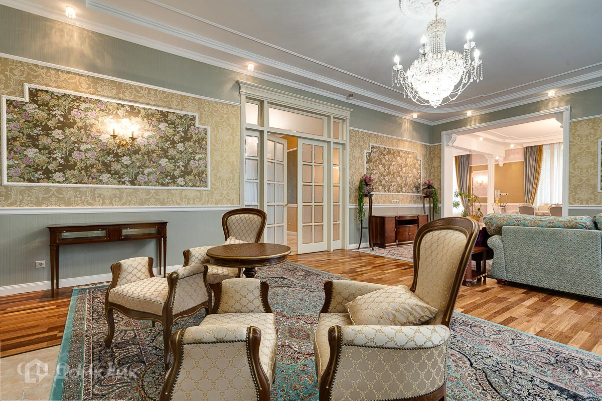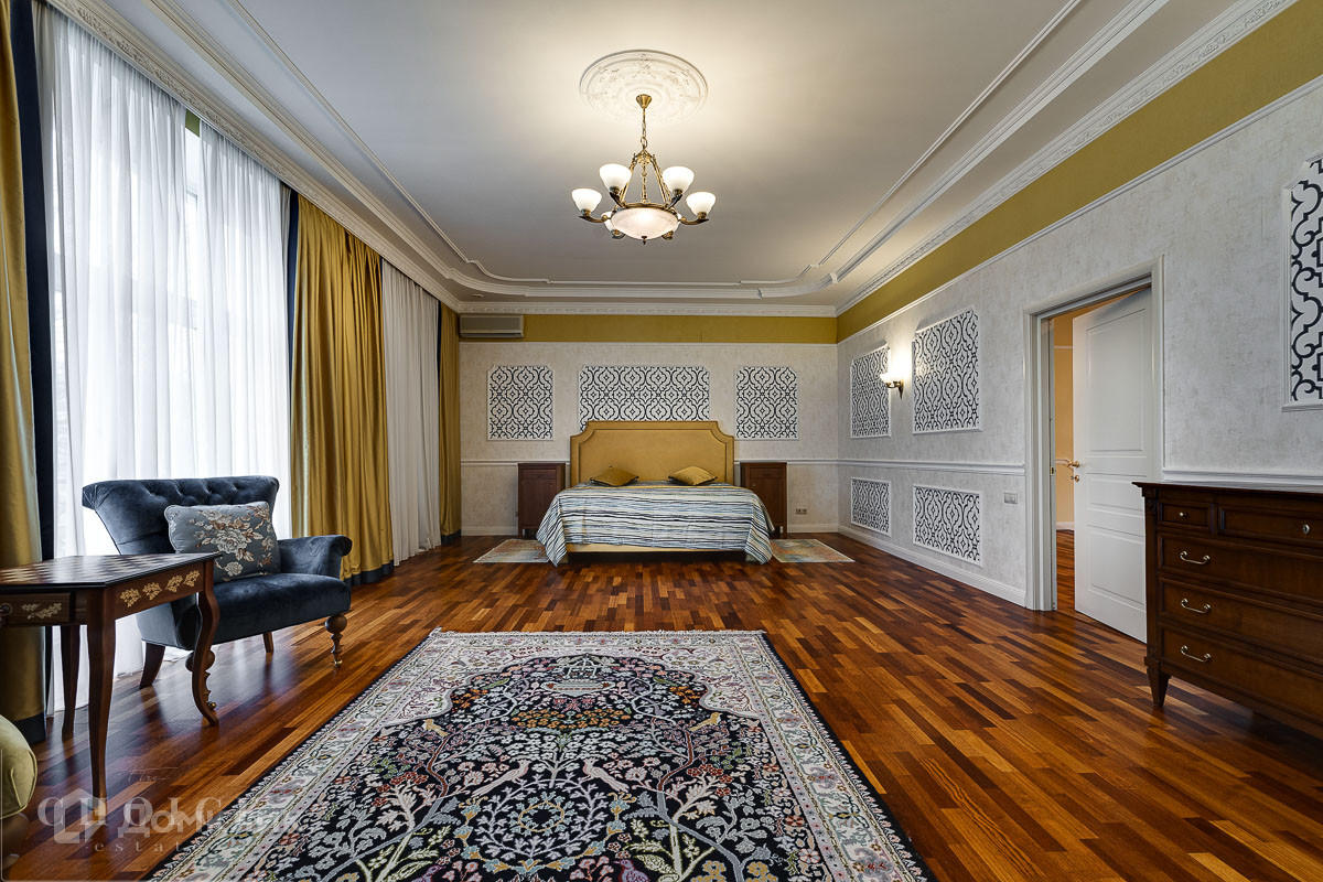 Предлагается на продажу просторный трехэтажный загородный дом в классическом стиле площадью 650 кв.м, расположенный на участке 12 соток с ландшафтным дизайном в тихом живописном месте на "ближней Рублевке". Дом оснащен системой видеонаблюдения, полностью меблирован и оборудован всей необходимой техникой от ведущих мировых производителей. Здесь есть все необходимое для проживания большой семьи. На первом этаже находится гостиная, совмещенная с кухней и обеденной зоной, кабинет, бассейн, сауна, гостевой санузел, детская игровая, гардеробная, кладовая и помещение свободного назначения. Второй этаж занимают четыре спальни с индивидуальными гардеробными и санузлами. Третий этаж отведен для двух спален с санузлами, а также тренажерного зала. На придомовой территории отдельно построен гараж на два машиноместа с квартирой для персонала, есть беседка. Комфортное место без безумных поселковых платежей, с удобным выездом в Барвиху или на платную трассу.