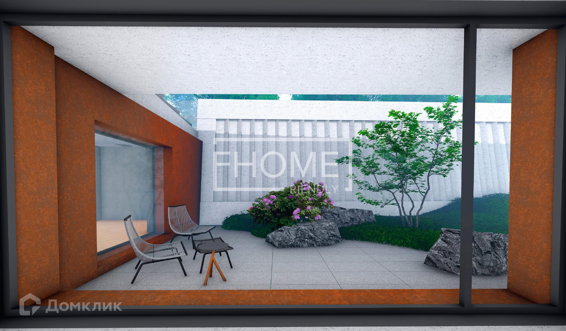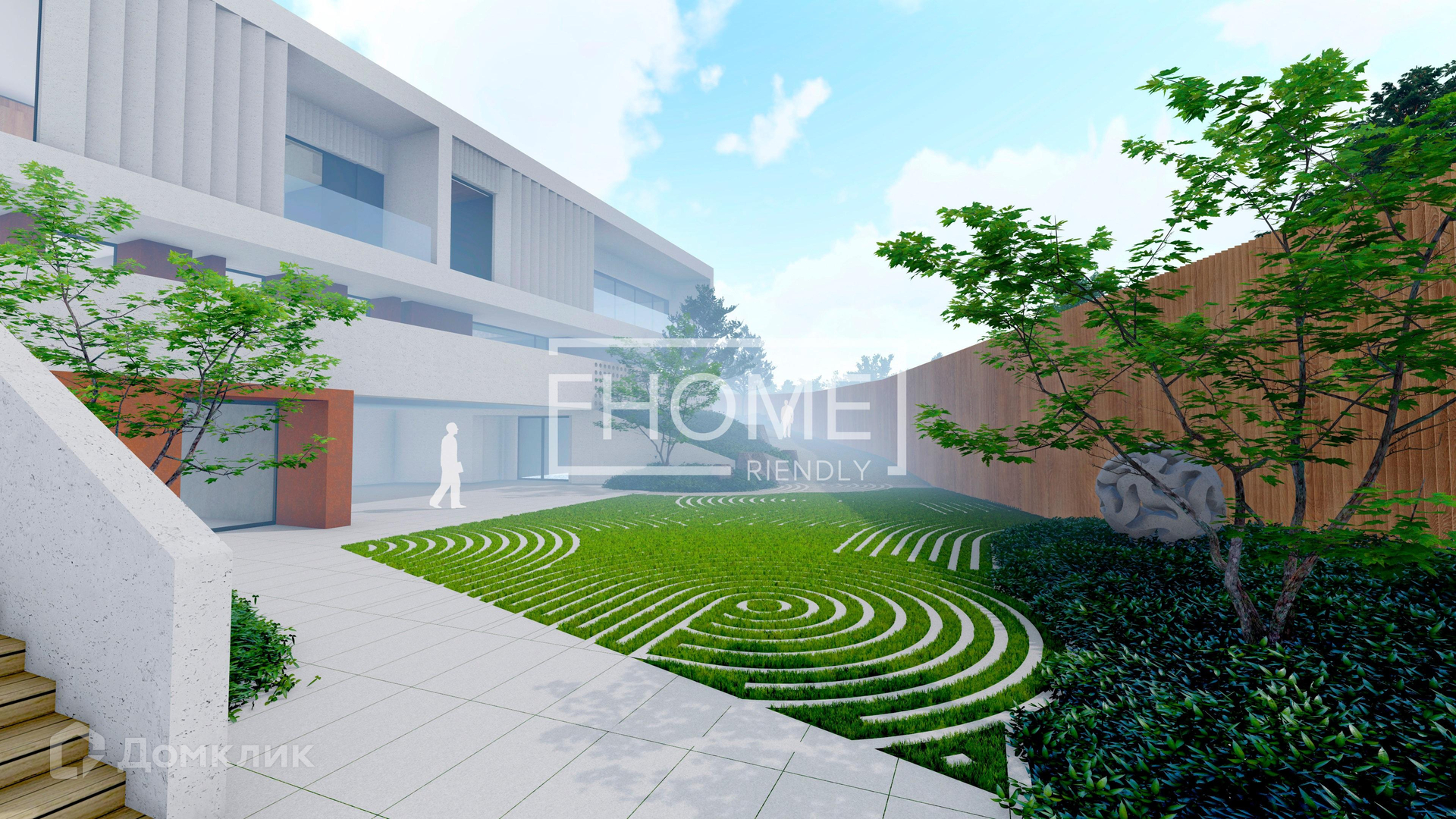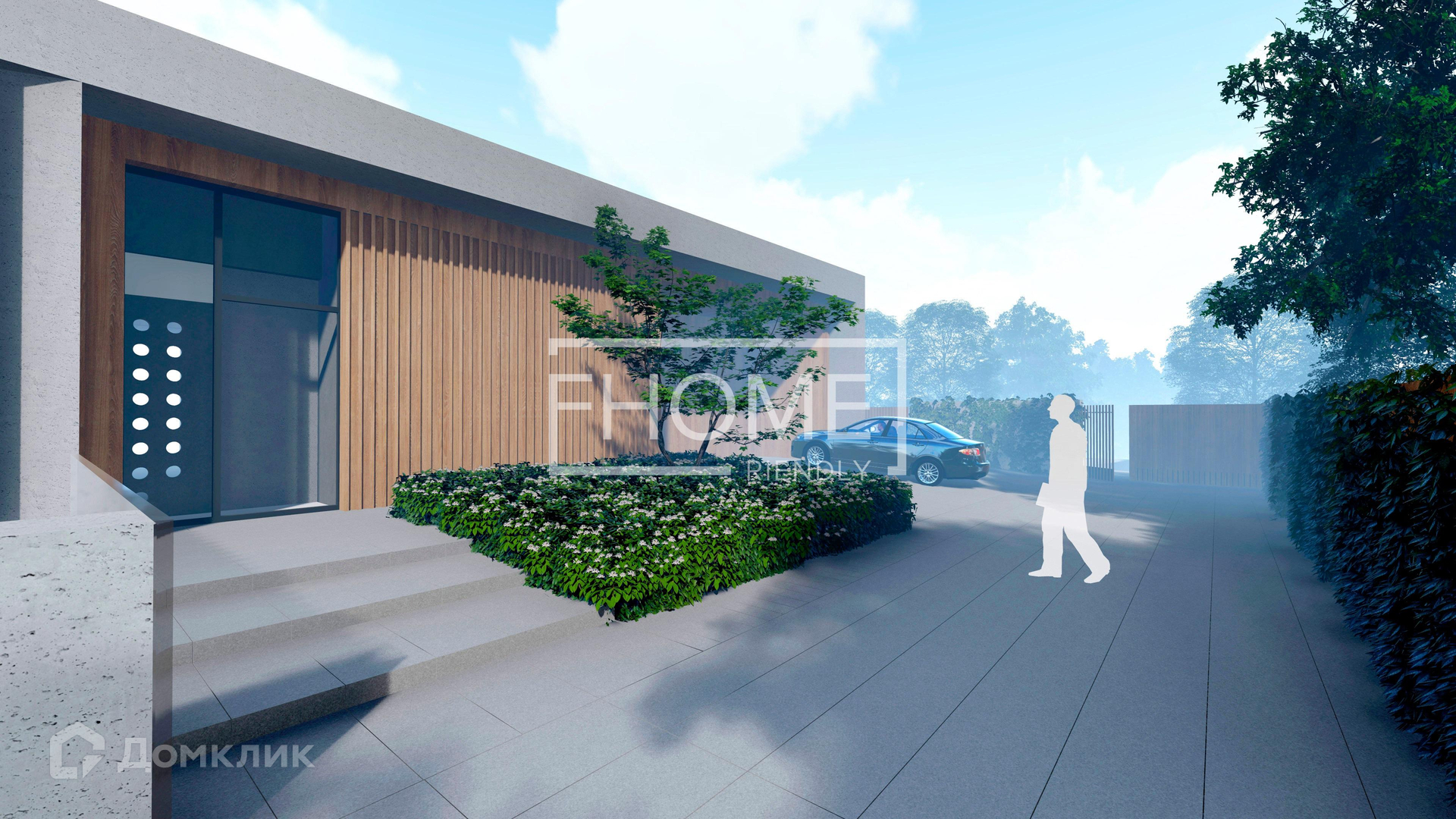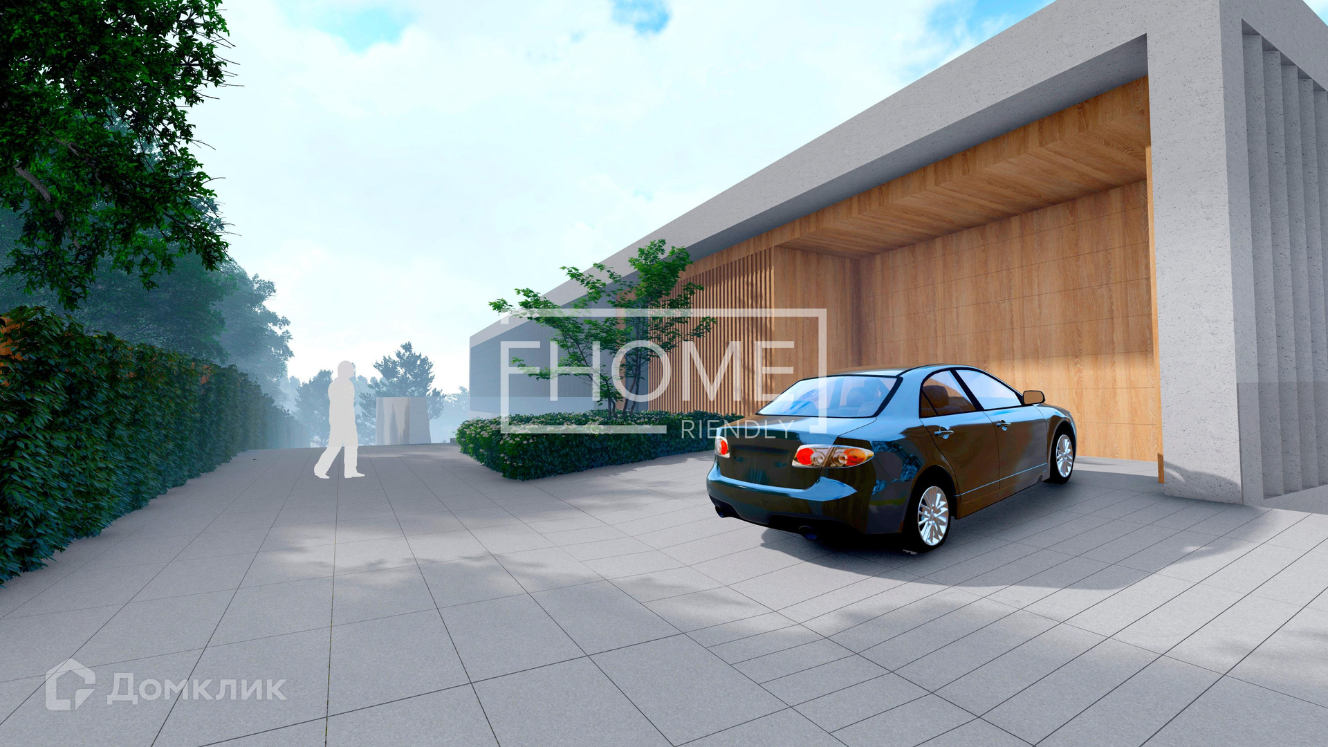 Монолитный проект разработан до мельчайших деталей, посажен на участок с учетом рельефа с перепадом высот.