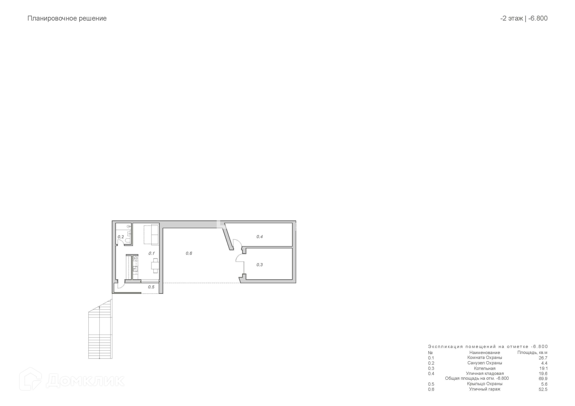 Нижний уровень: хозяйственные и подсобные помещения, квартира для персонала, навес на два автомобиля.