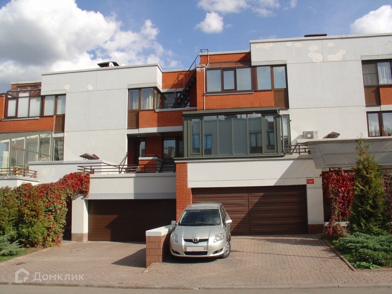 Лот №10536. Таунхаус под ключ 340 кв.м. на участке 2.00 соток. Количество спален: 3. Коттеджный посёлок «Барвиха-2», Рублево-Успенское шоссе, 8 км от МКАД.  Окна двухкамерные пластиковые стеклопакеты, гаражные ворота с электроприводом ("Horman"). 1 этаж: гараж на 1 а/м, бойлерная, холл, прихожая, столовая - кухня, гостиная с камином, с/у, зимний сад. 2 этаж: спальня с ванной комнатой, 2 детские с с/узлом и кабинетом, гардеробной, холл, эксплуатируемая кровля-терраса. Мансарда: холл, с/у, зимний сад-кабинет.