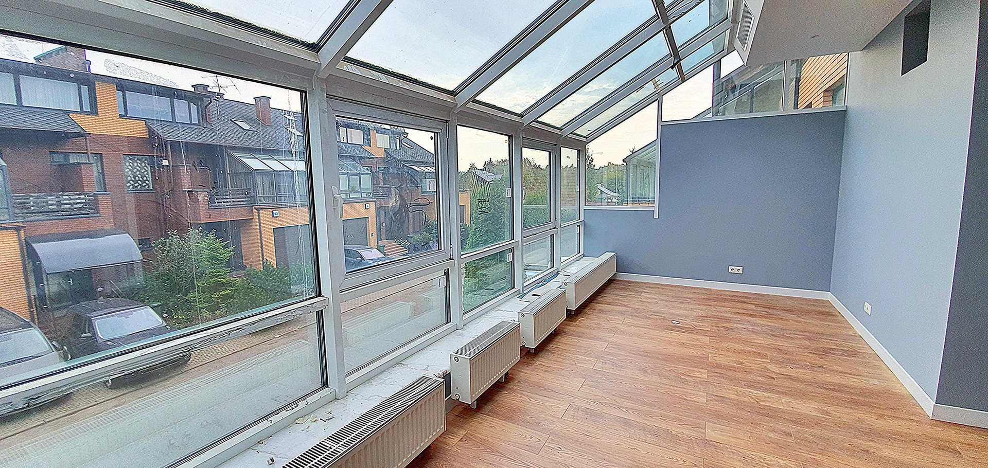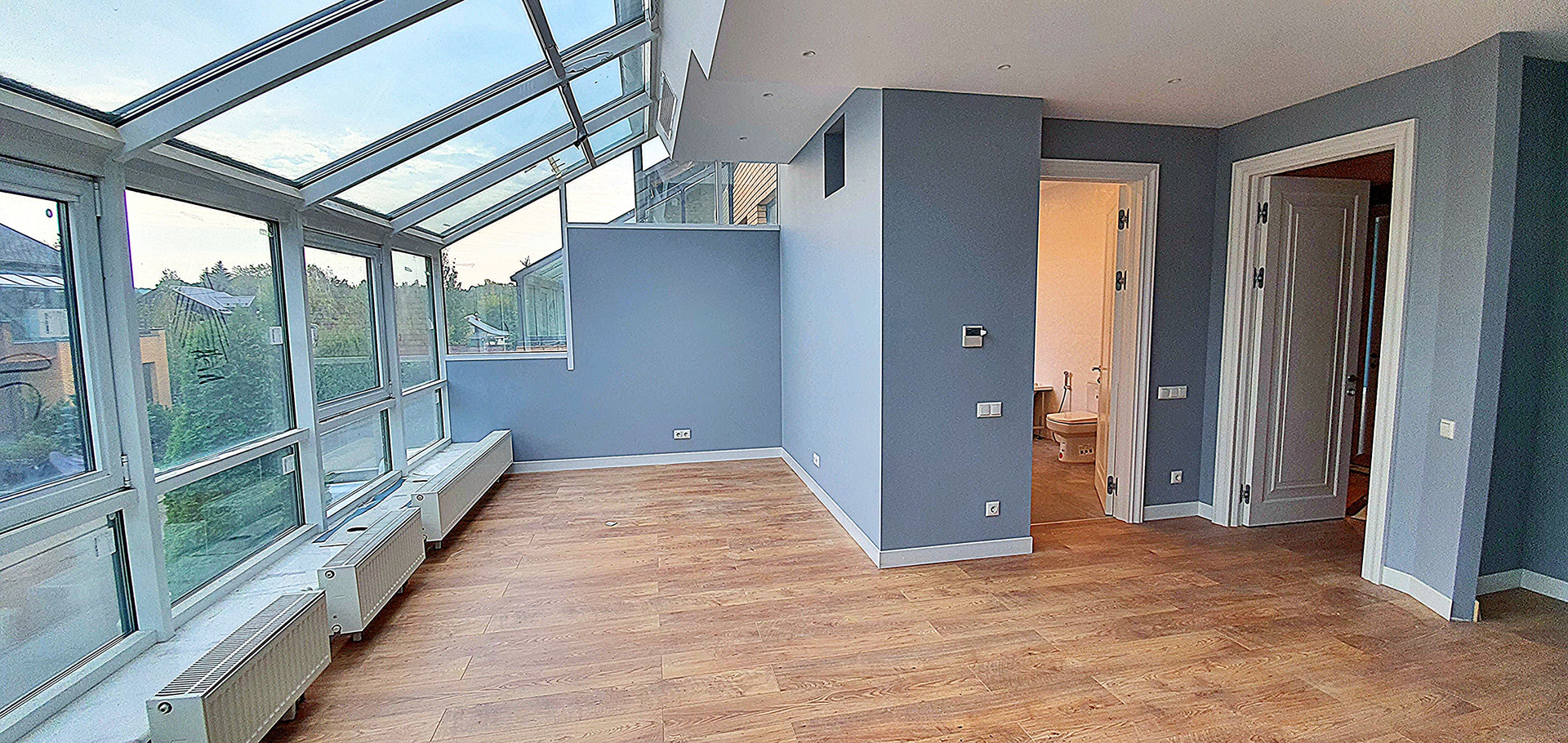 2-ой уровень: холл, 2 спальни, комната со стеклянным эркером и 2 балконам, 2 с/у