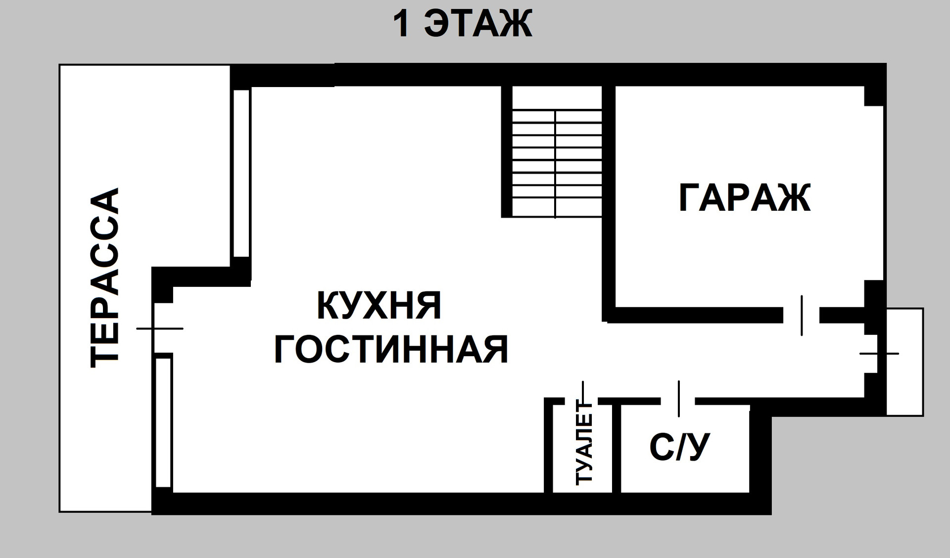 1-ый уровень: кухня-столовая-гостиная, с/у, гараж ,