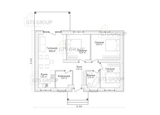 Проект каркасного дома КД-70 Возможна постройка на Вашем земельном участке с использованием МАТ.КАПИТАЛА и СЕМЕЙНОЙ ИПОТЕКИ 6%! Жилая площадь дома: 62 м² Общая площадь 1-й этаж: 73 м² холл — 9 м², гостиная — 18,7 м², спальня — 9,5м², спальня — 9,5 м², кухня — 11 м², с/у — 4,3 м², терраса — 10,8 м².